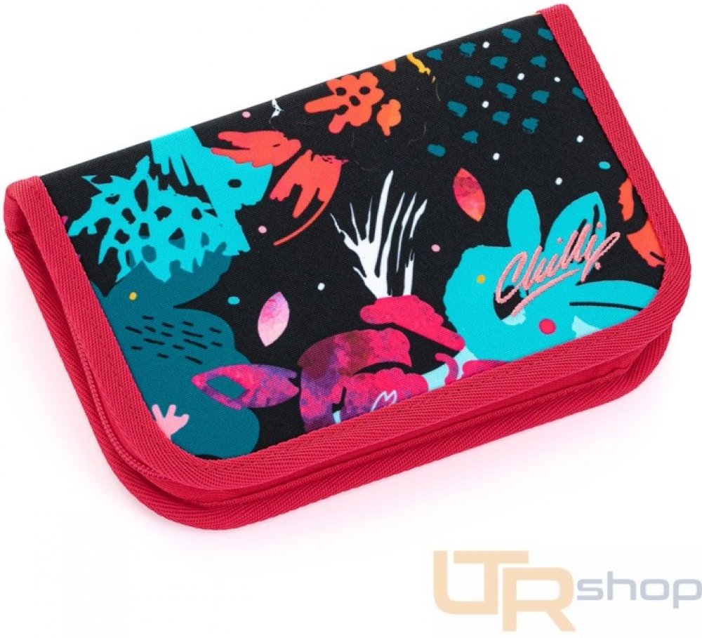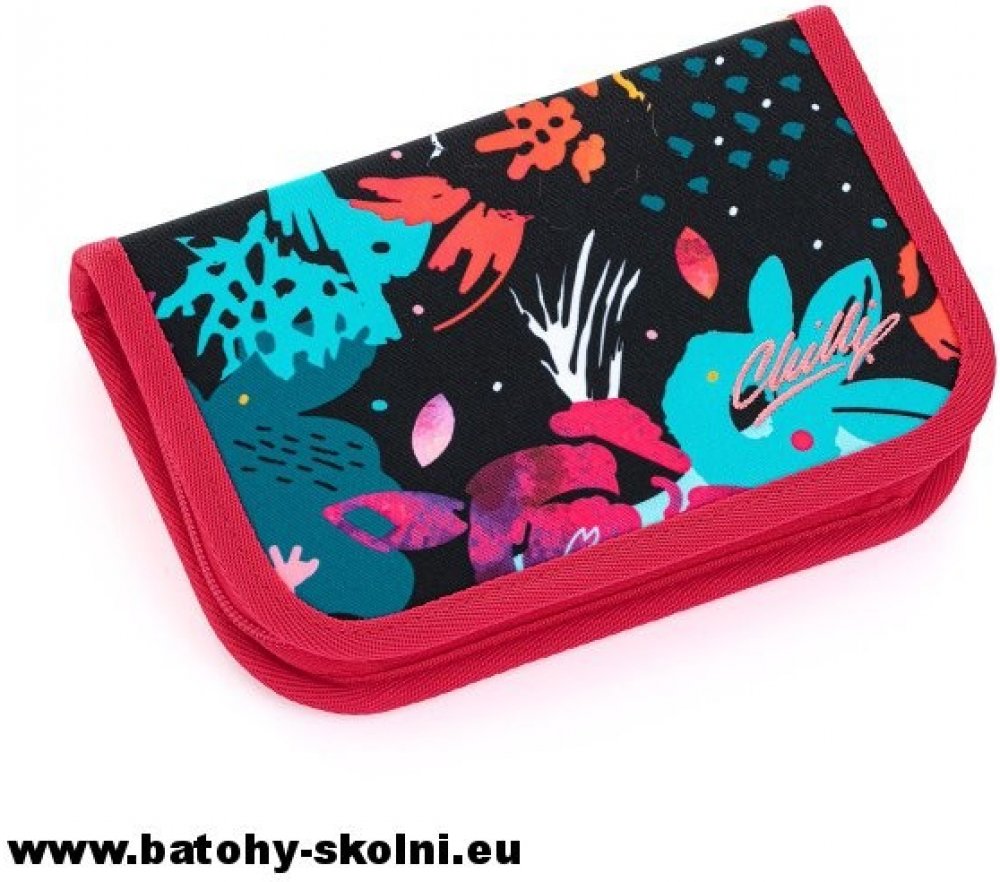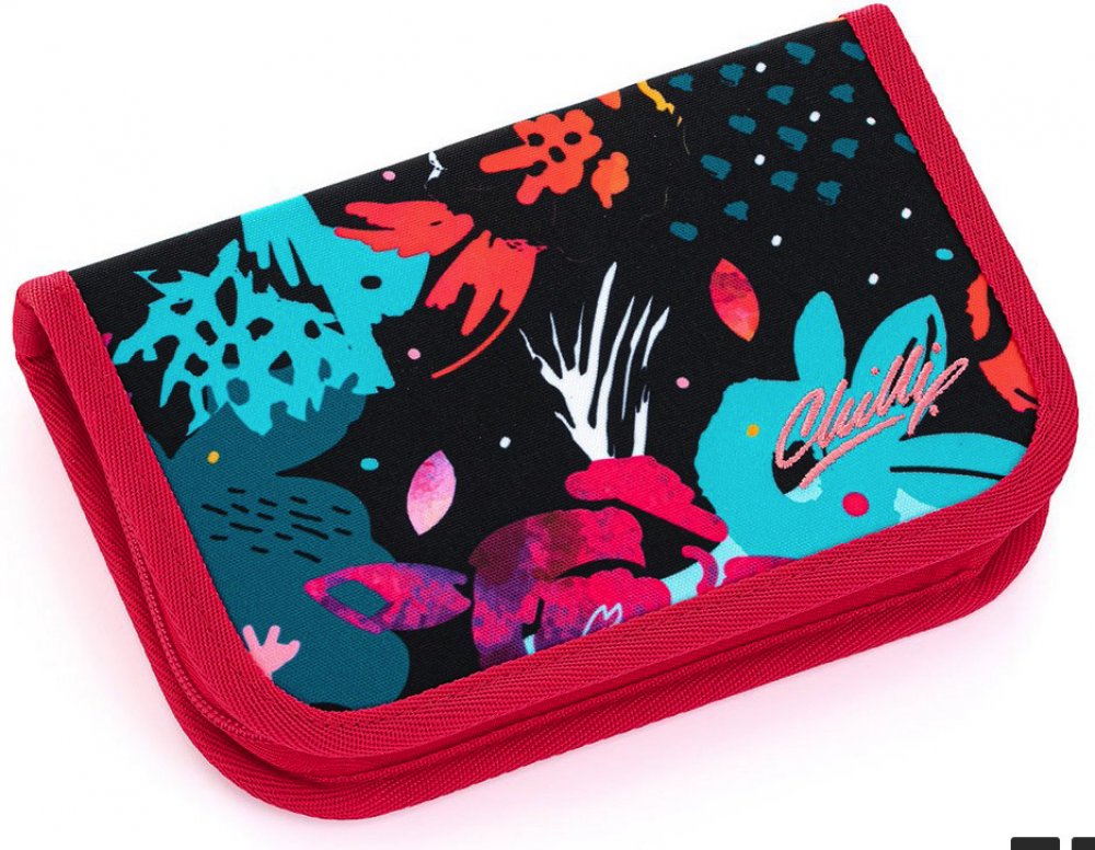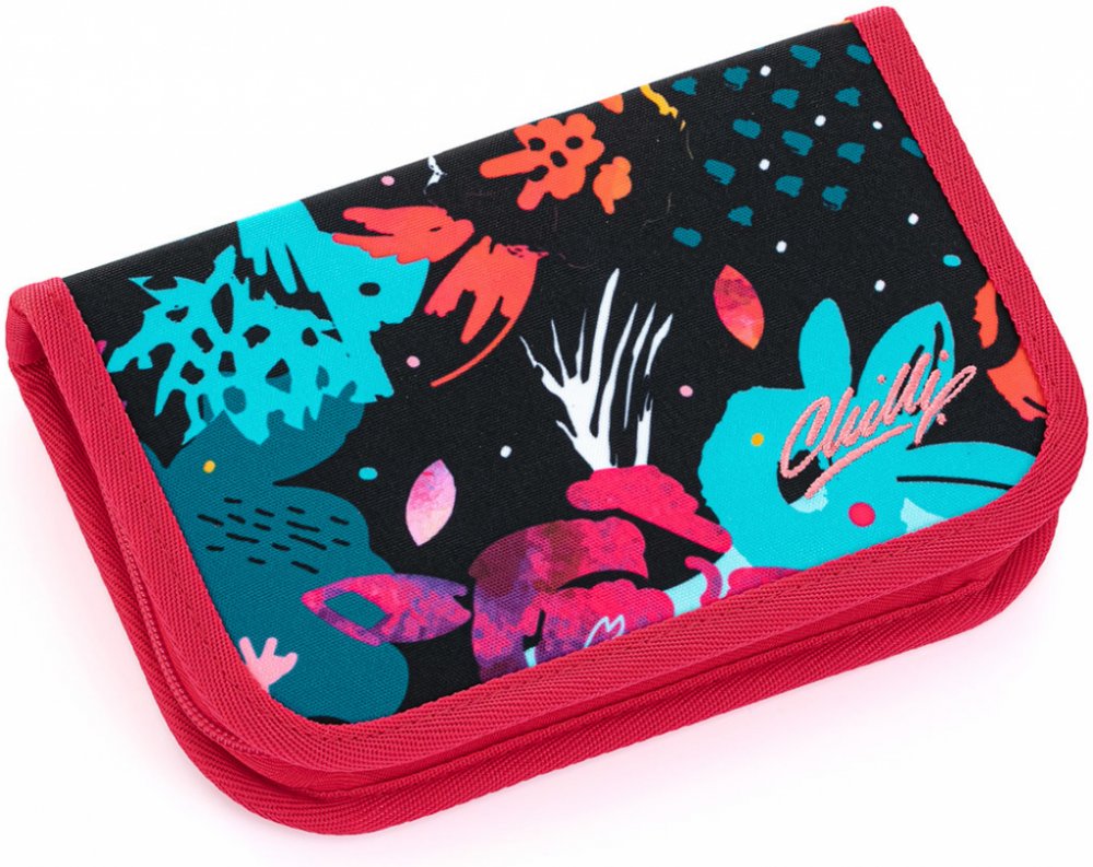 Jednopatrové školní pouzdro se dvěma klopnami je vybaveno 21 klasickými gumovými úchyty na pastelky a fixy, třema širšími úchyty na pravítko, kružítko či nůžky a dvěma většími úchyty na gumu a ořezávátko. Pod klopou z průhledné folie najdete rozvrh hodin, druhé poslouží třeba i na taháky :-)