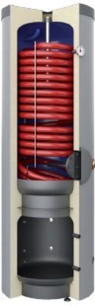 Výhody:Dva nezávislé systémy v jednom zařízení.Kompletní řešení - zásobník TUV i akumulační zásobník.Prostorově úsporný - kompaktní design.Rychlý ohřev vody díky spirálovému velkokapacitnímu výměníku 2,9 m2.Levnější montáž díky zjednodušené instalaci.Kvalitní keramický smalt EXTRA GLASS®.Dodatečná ochrana magneziovou anodou.Bezúdržbová titanová anoda - volitelně.Možnost