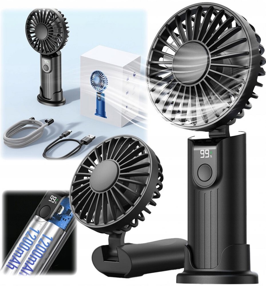 ⚡Větrný přenosný akumulátorový ventilátor s velkou baterií, nabíjený přes USB, černý, tichý, mini ruční, 5000 mAh TOPK K38⚡