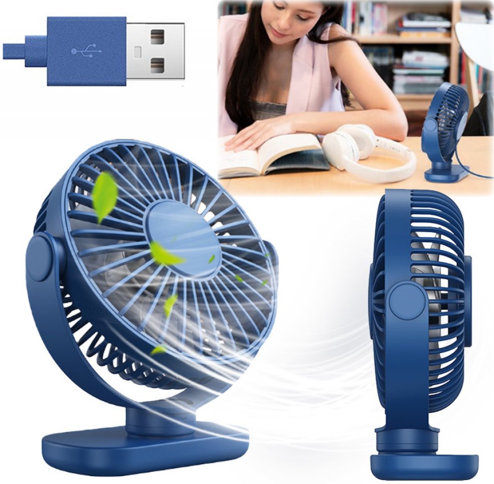 ⚡Větrník USB Tichý mini stolní ventilátor chlazení TOPK K62C modrý otočný 360⚡Tichý mini ventilátor otočný stolní ventilátor 360 TOPK K62C
