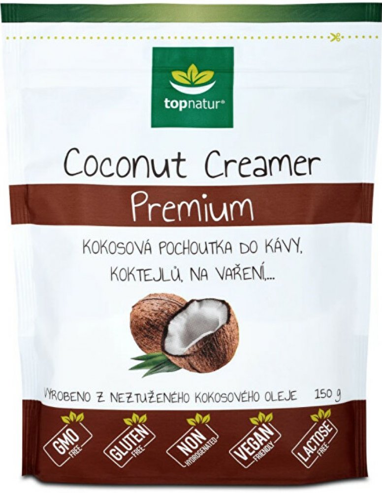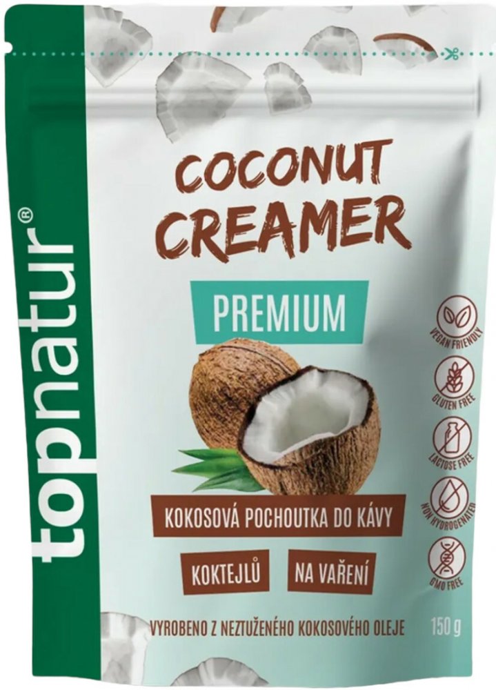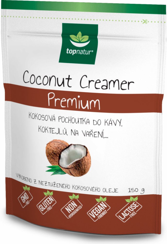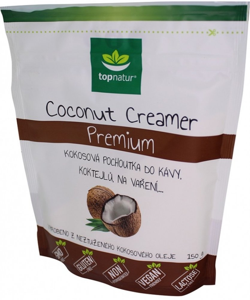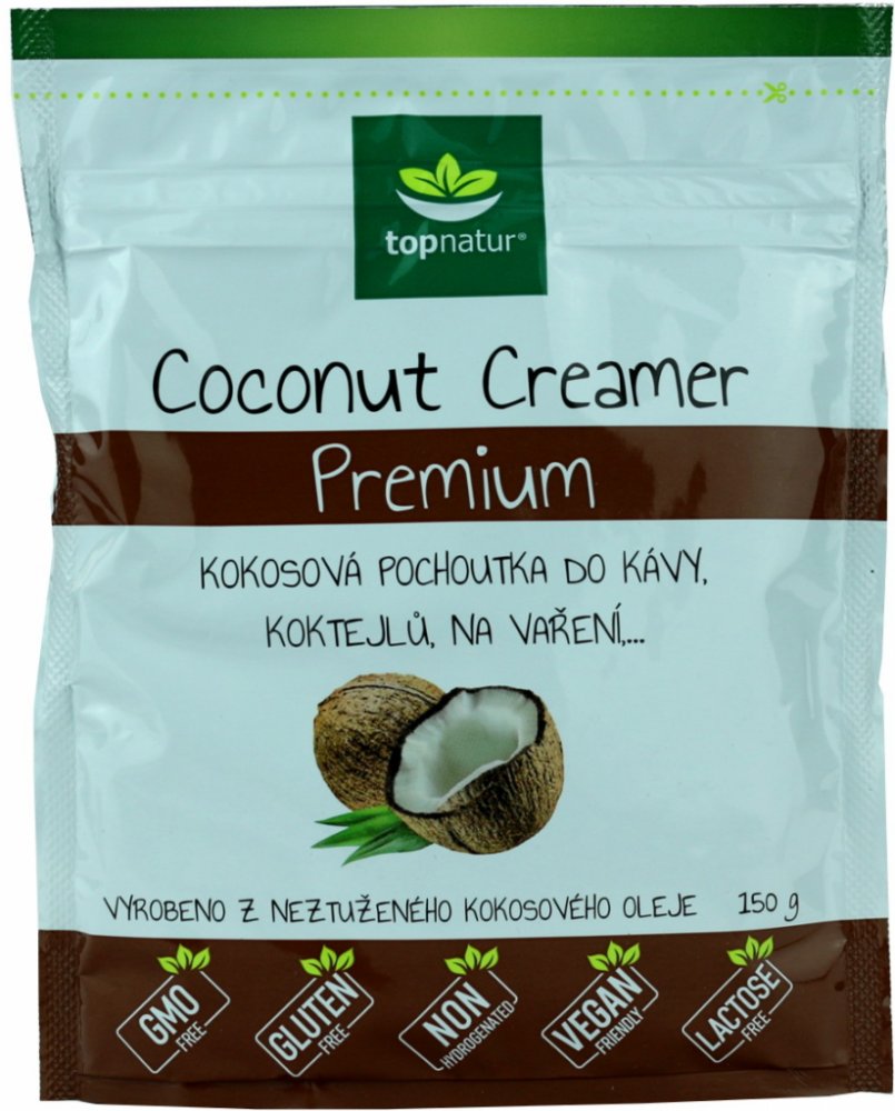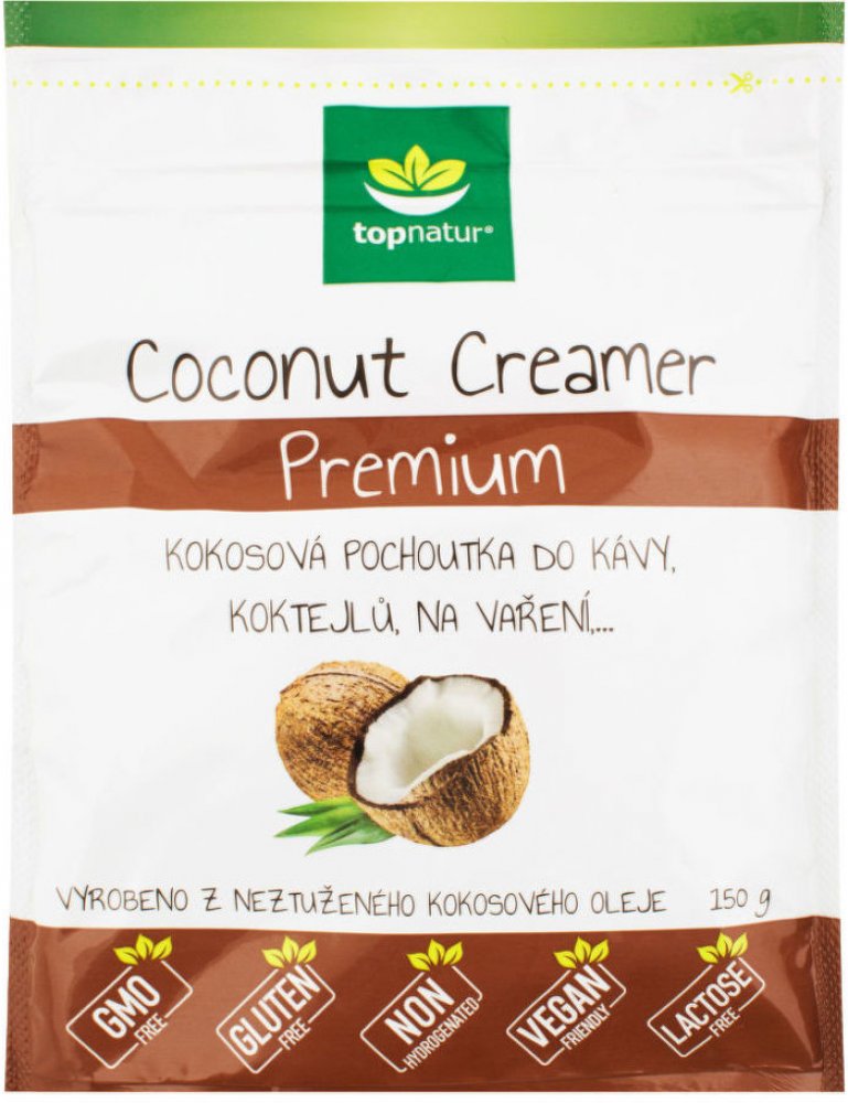Máte rádi kávu se smetanou? Vyzkoušejte malou obměnu s kokosovou pochoutkou, která kávu příjemně zjemní. Coconut Creamer Premium je vyroben z neztuženého kokosového oleje. Dodá kávě lahodnou chuť a sladkost. Výborný je také jako přísada do rozmanitých koktejlů a smoothies. Hodí se do polévek i ke zjemnění omáček. Coconut Creamer Premium je bez lepku, neobsahuje kasein ani laktózu.