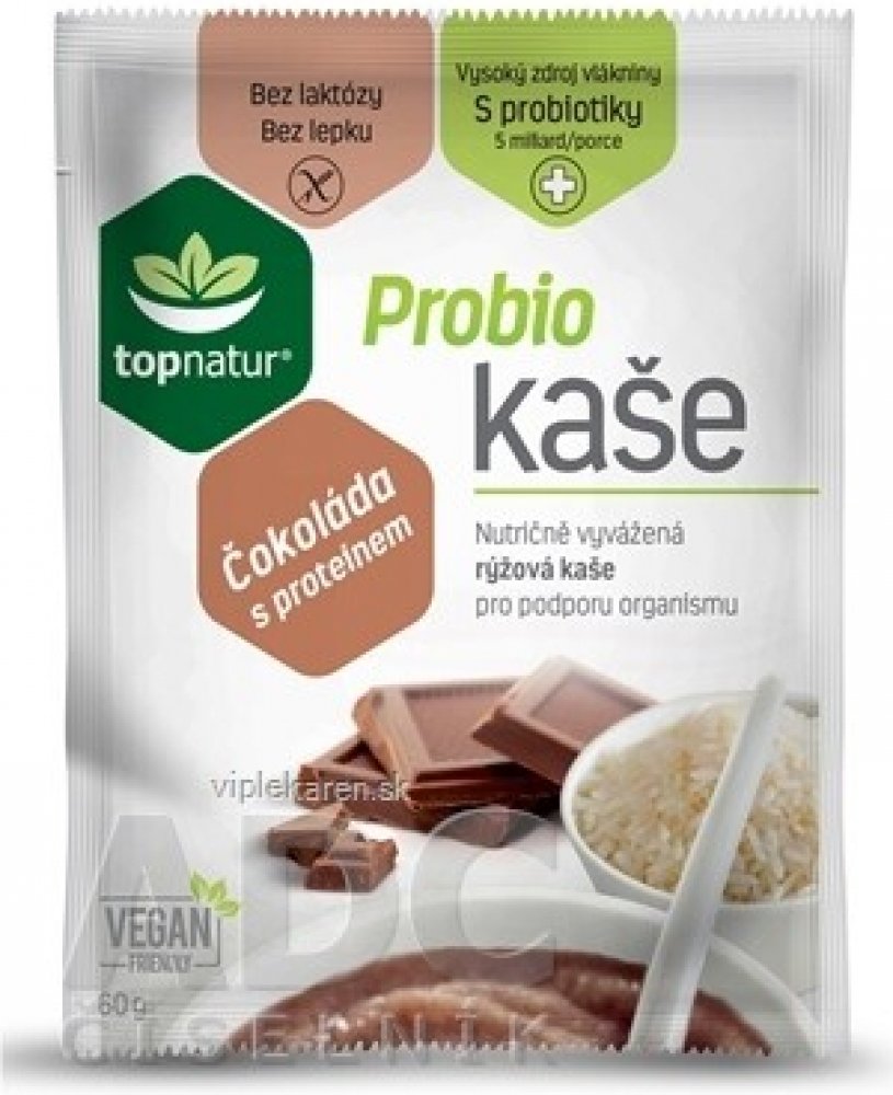 Topnatur Probio kaše pistáciová 60 g. Smetanově jemná rýžová kaše s pistáciemi neobsahuje lepek, laktózu ani kasein, a je tak ideální volbou pro lidi s výživovým omezením i pro všechny, kdo dbají na racionální stravování. Probio kaše jsou jedinečné přídavkem probiotických kmenů. Dále obsahují inulin, prebiotickou vlákninu, která je velmi důležitá jako živný substrát pro růst probiotických kultur obsažených v kaši. Tato Probio kaše Pistácie je vhodná pro rekonvalescenty a sportovce, stejně jako pro osoby s intolerancí k laktóze, s bezlepkovou dietou, pro vegany, seniory a mohou ji konzumovat i děti. Snídaně s dobou přípravy pouze 3 minuty po zalití horkou vodou do 80 °C.