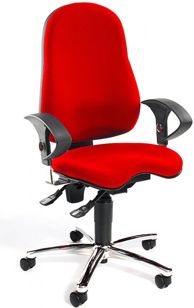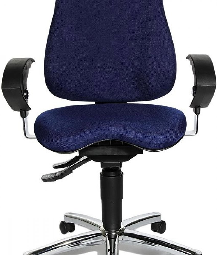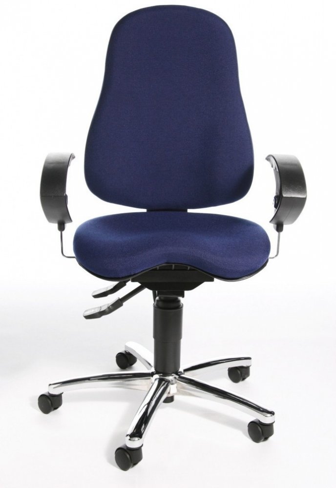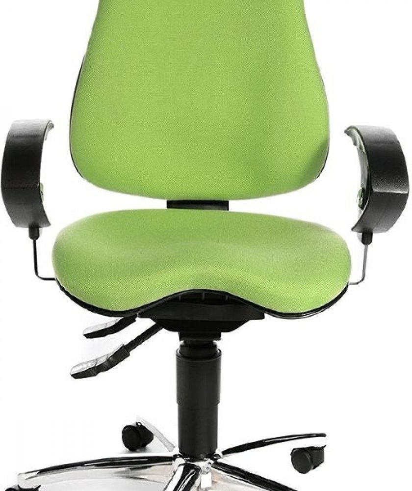 Fitness židle pohodlným, ergonomický tvarovaným orto-sedákem vybaveným kloubem body-balance-tec, umožňující pohyb do všech stran a aktivní dynamické sezení při každodenní práci v kanceláři.