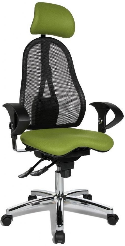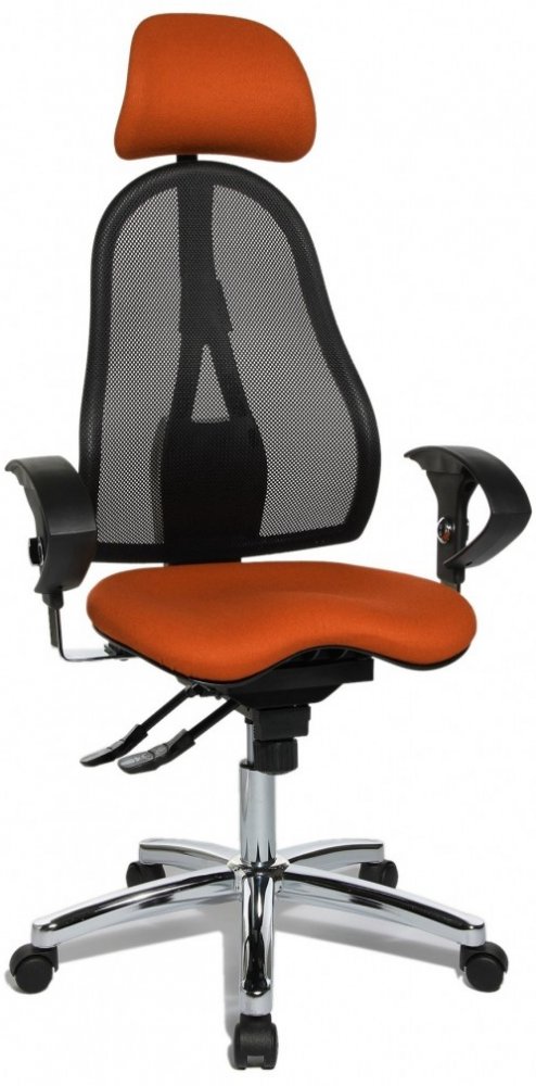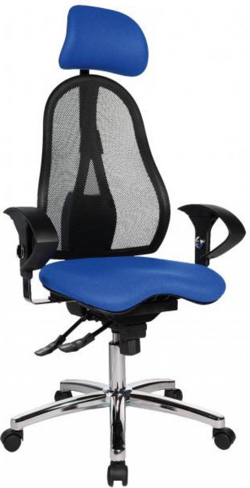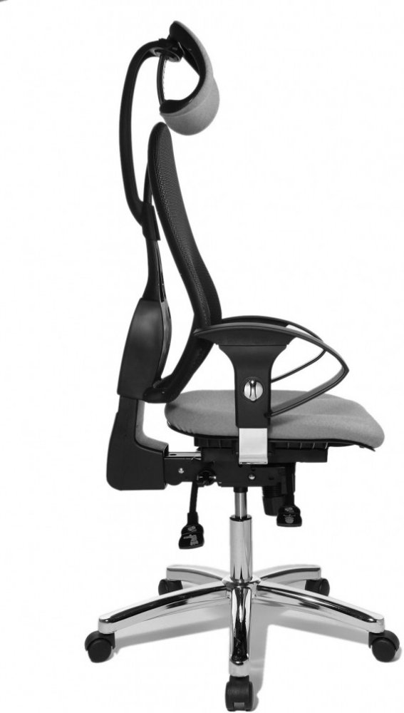 Ergonomicky tvarovaný, výškově stavitelný opěrák je čalouněný vzdušnou síťovinou. Součástí je opěrka hlavy, která je stavitelná do výšky a do hloubky. Spolu s pohodlným, rovněž ergonomicky tvarovaným sedákem s Body-Balance-Tec kloubem poskytují pohodlí a komfort při sezení. Sedák následuje pohyby vašeho těla a udržuje páteř v rovnováze. Vždy ji drží ve správné pozici a během sezení procvičujeme zádové svalstvo. Z přirozeného pohybu těla tak automaticky vyplývá výsledek, který podporuje zdraví.
