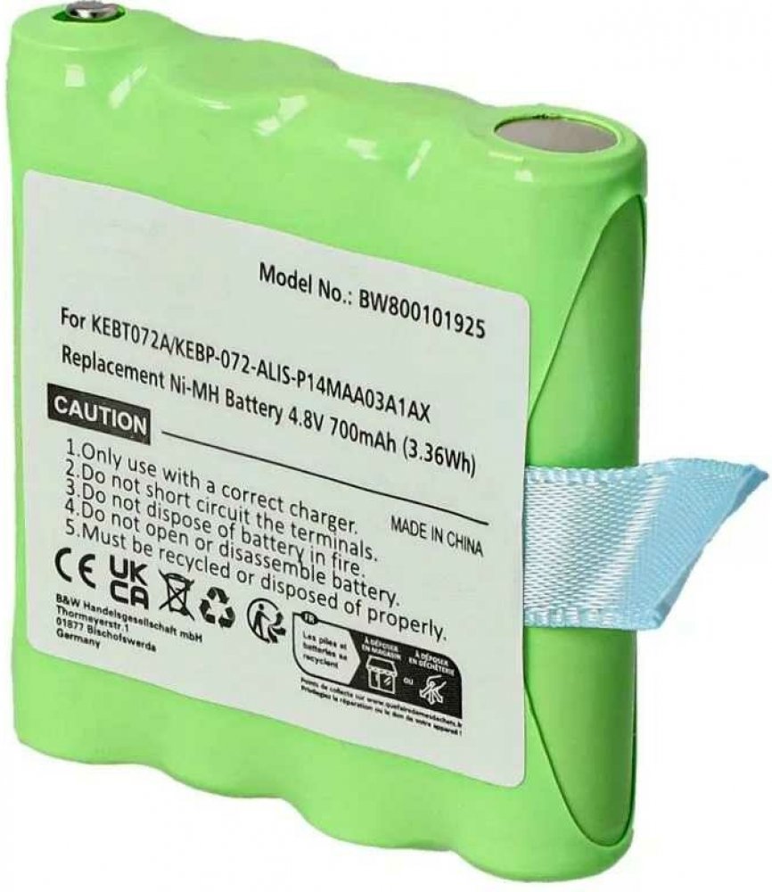 Hmotnost: 50 g Rozměry (D x Š x V): 4,5 × 4,2 × 1,1 cm Technologie: Ni-MH Kapacita: 700 mAh Napětí: 4,8 V Jmenovitá energie: 3,36 Wh Počet článků: 4 Obsah dodávky: 1x baterie