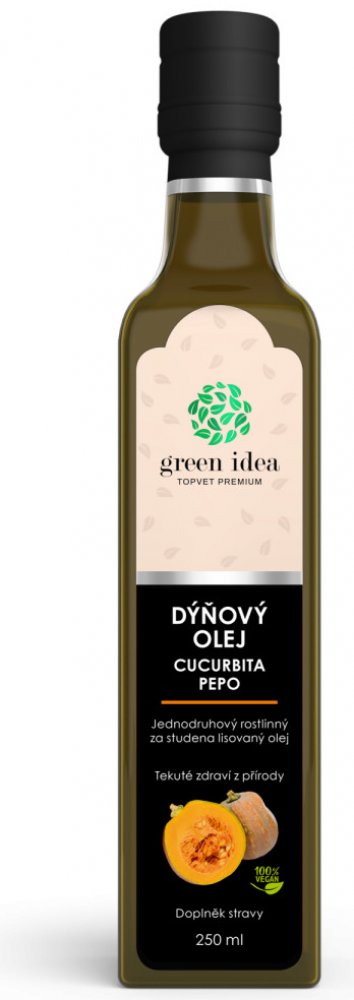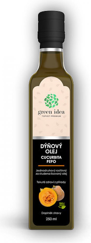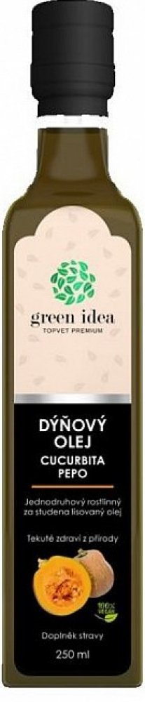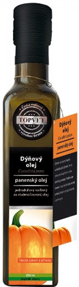 Dýňový olej je zdrojem širokého spektra minerálů, vitamínů a nenasycených mastných kyselin, důležitých pro náš organizmus. Jedná se o velice chutný olej typické vůně a příjemné oříškové chuti. Olej je lisovaný za studena z jader dýně. Je významný pro normální funkci močových cest a prostaty. Doporučujeme pouze do studené kuchyně, tepelným zpracováním ztrácí významnou část své účinnosti. Je vhodný jako základní olej pro masážní kompozice.