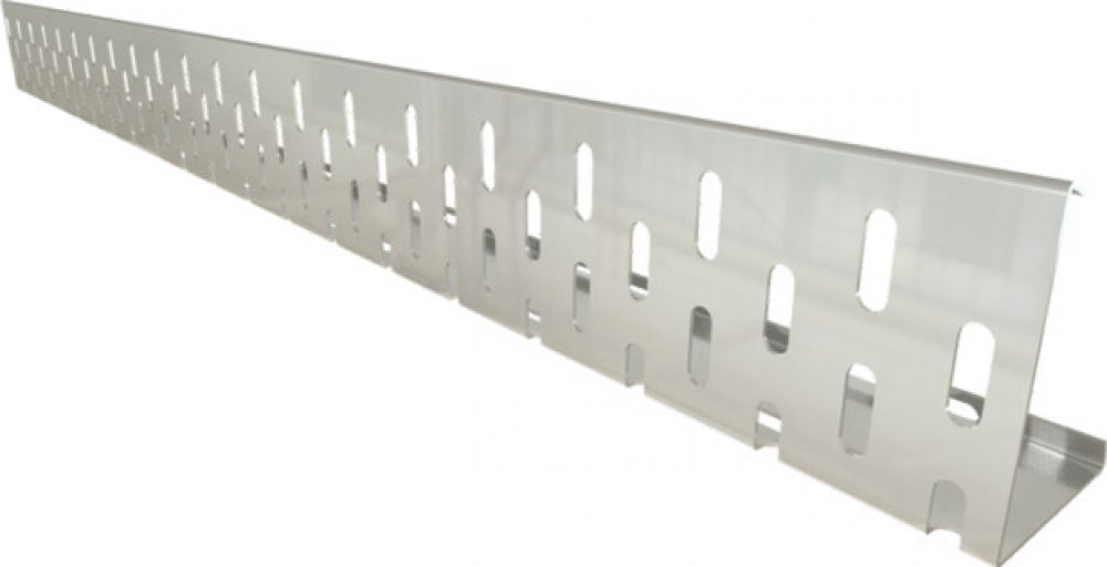 Kačírková a okrajová lišta pro střechy s přitěžující vrstvou kačírku a ukončení profilu dlažby. Materiál: hliník tloušťky 1,5 mm, délka lišty 2000 mm. Lišta má po 250 mm otvory pro provlečení přířezu všech druhů hydroizolace. Tuhost lišty je zajištěna ohybem 10 mm na koncích obou ramen. Součástí dodávky je spojovací díl pro snadné napojení další lišty.