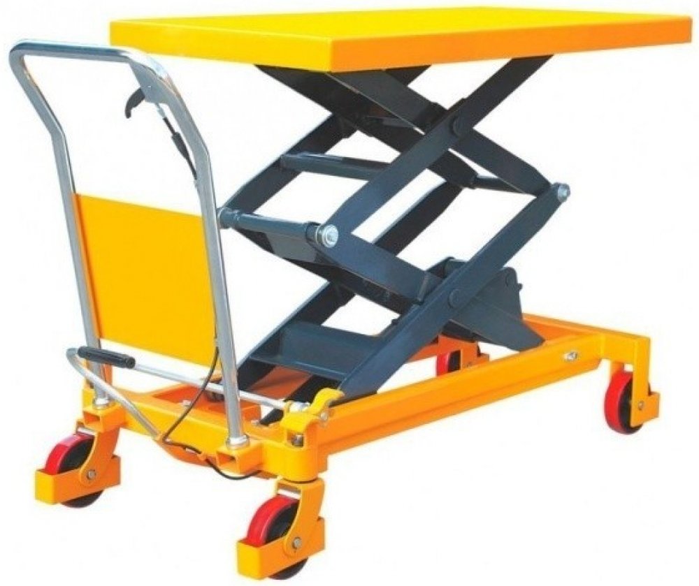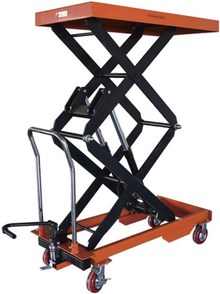 Jedná se o snadno ovladatelný výškově nastavitelný stůl typu PTS. Je vhodný pro nakládání vozidel, naskladňování do regálů či k výrobní lince. Je skvělým pomocníkem při manipulaci s těžkými břemeny. Dvojité nůžkové zvedací stoly jsou typem zařízení, které umožňuje zvedat břemena do větší výšky než modely s jednoduchými nůžkami. Zdvihání i pojezd je manuální.