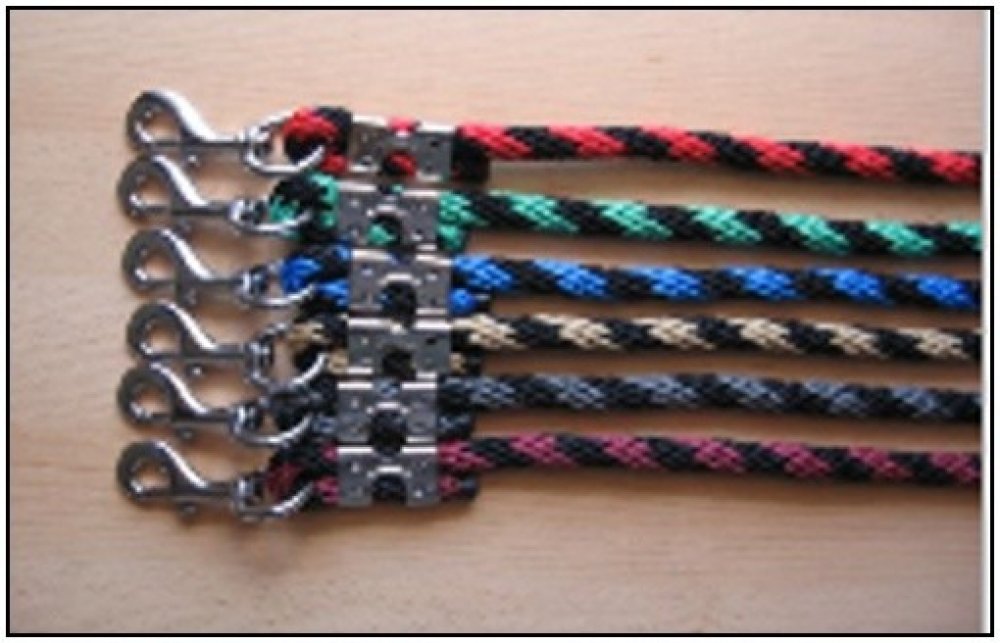 Klasické vodítko z polypropylénového spiroidního lana s karabinou typu ,,Horse".