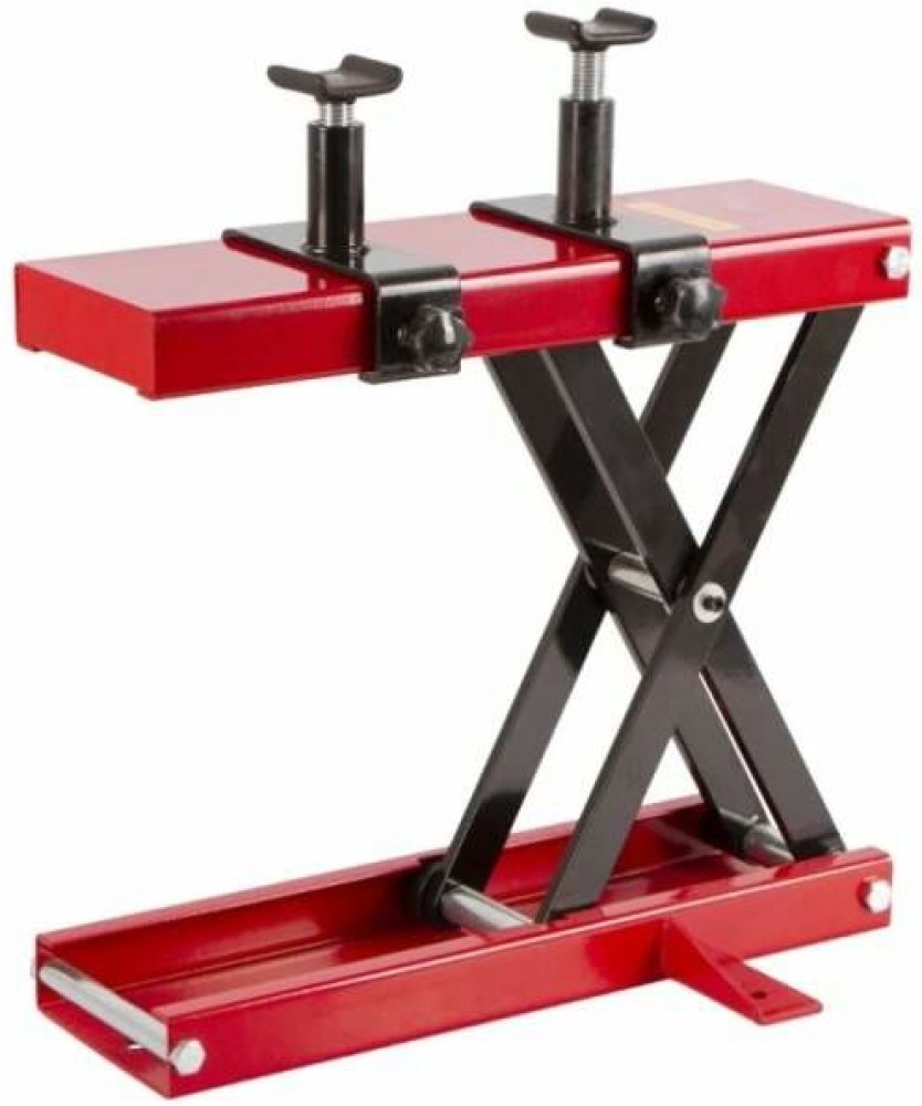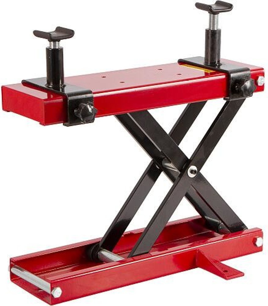 Robustní a pevná kovová konstrukce s nosností až 500 kg pro zvedání motocyklů při údržbě nebo opravách.