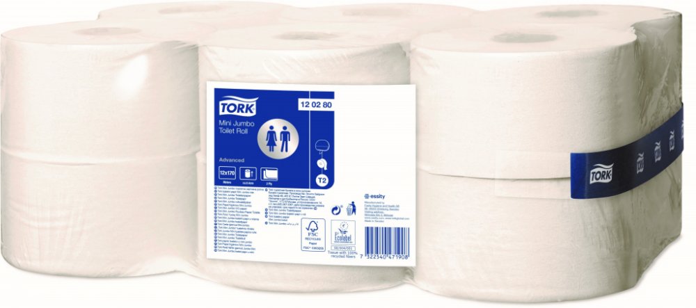 ART. Tork 120280 toaletní papír Mini Jumbo role Advanced - Systém Tork mini Jumbo se vyznačuje časovou efektivitou a nižšími náklady a nabízí mnohem větší objem toaletního papíru než standardní role. Tork 2vrstvý toaletní papír mini Jumbo v roli v kvalitě Advanced nabízí skvělý poměr mezi náklady a funkčností a je ideální pro provozovny se střední až vysokou návštěvností. Vysoká kapacita: snižuje ...