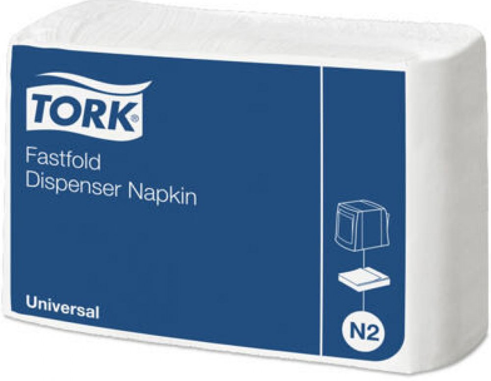 Jednovrstvé bílé ubrousky Universal kvality, určené do zásobníků Tork Fastfold (Tork systém N2), počet ks v balení: 300