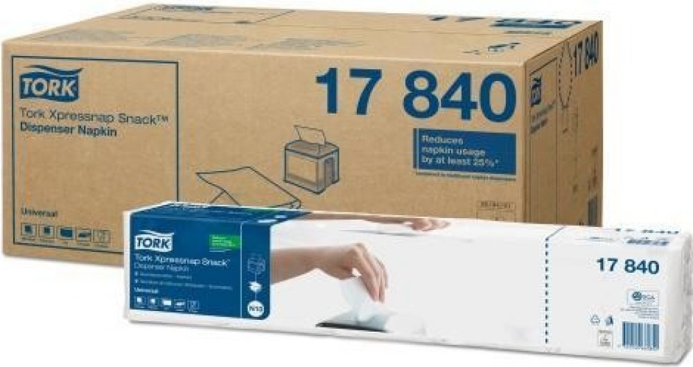 Papírové ubrousky TORK Xpressnap Snack 21,6x21,6cm do zásobníku N10, 9000ks, skladání na 1/4. Naše ubrousky do zásobníků jsou vždy tam, kde mají být po ruce, a poskytnou Vám pocit, že o Vás je zájem i v té nejrušnější samoobslužné restauraci či fast-foodu. Navíc, zásobníkové ubrousky jsou výborným reklamním médiem, vzhledem k tomu, jak jsou často používány a hodně vidět. Velký ubrousek skládaný na...