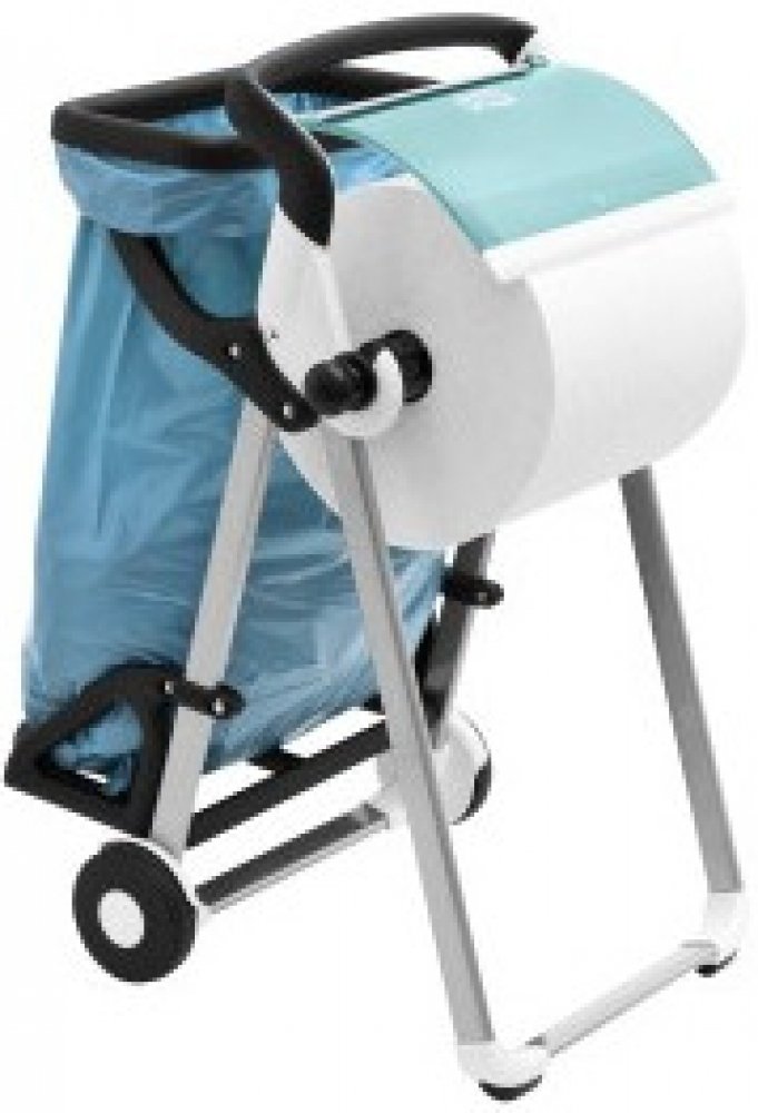 Tork příslušenství - držák na Tork pytle do odpadkového koše je v kombinaci s Tork stojanem na podlahu praktickým řešením pro odkládání utěrek při utírání a čištění, když se potřebujete pohybovat po pracovišti.