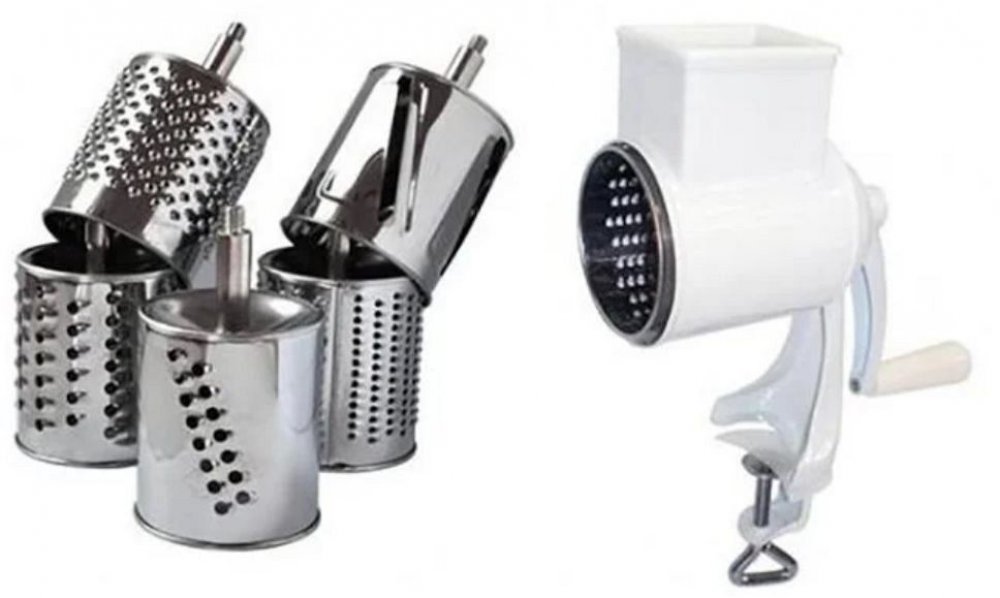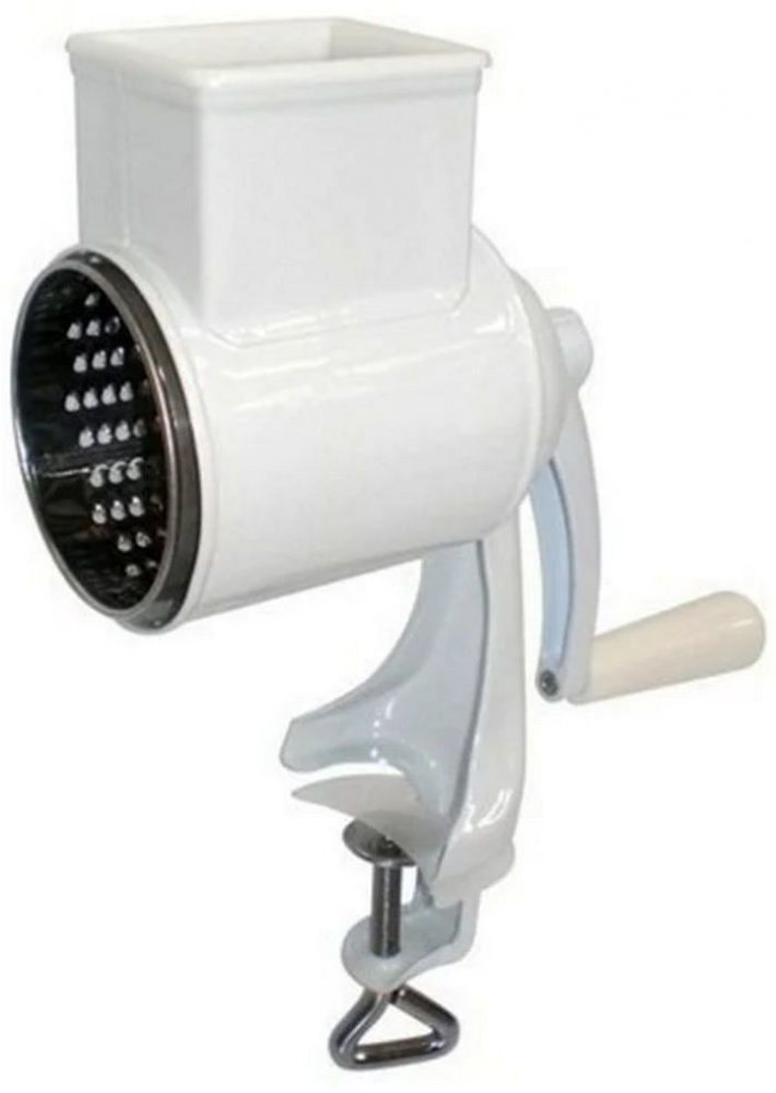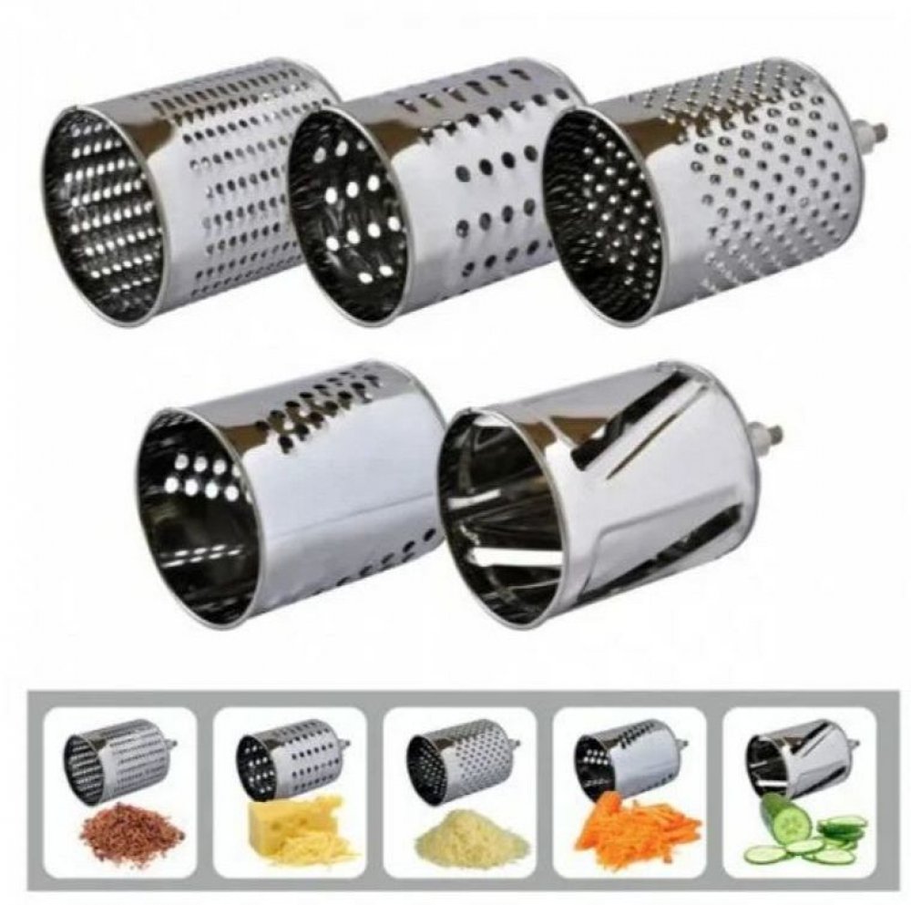 Mlýnek pro snadné a rychlé mletí sýrů a ořechů, vyroben z kovu a nerezavějící oceli, snadné použití a údržba, 5 ks výměnných nástavců - na strouhanku, sýr, zeleninu či ovoce na plátky apod., vhodné do myčky na nádobí. Uchycení ke stolu na šroub. Násypka s přítlačným nástavcem pro bezpečné mletí.