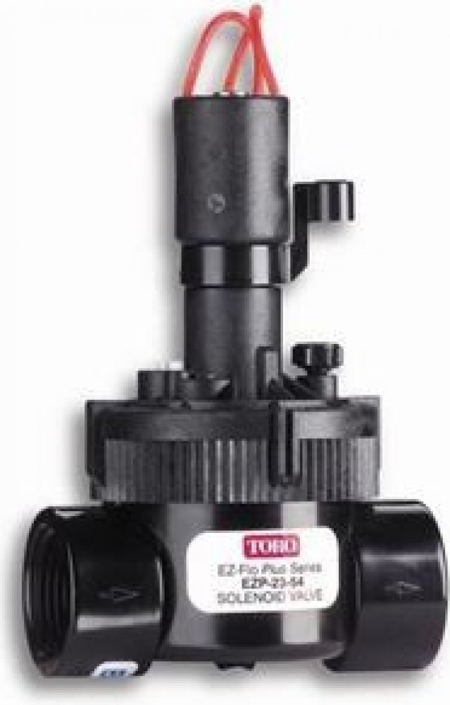 Toro EZP-03-54 Elektroventil bez reg. průtoku 1" VNI - 24V/ACElektromagnetický ventil je důležitá řídící součást automatických systémů. Ventily jsou ovládány pomoci elektromagnetu. Na základě elektrického signálu ovládají přívod vody, a to buď otevřením, nebo zavřením ventilu. Spolehlivý elektromagnetický ventil použitelný k závlahám menších zahrad a veřejných prostranství. Ventily umožňují snadnou kontrolu údržby a servisu. - Membrána je vyrobena z termoplastické gumy s dvojitým vroubkováním. - Tělo ventilu a kryt cívky z nylonu zesíleného skelnými vlákny. - Pomalé zavírání ventilu snižuje nebezpečí vodního nárazu. - Zbudován odvzdušňovací ventil. - Snadná údržba - při servisu není nutné ventil odstranit ze systému, obsahuje málo součástek, bezšroubový prstencový kryt. - Vyrábějí se s regulací tlaku, nebo bez regulace tlaku.