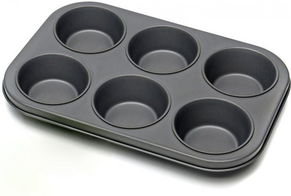 Forma na muffiny by nemala chýbať v žiadnej modernej domácnosti. Je vyrobený z uhlíkovej ocele, ktorá umožňuje jednoduché pečenie a prípravu sladkých aj slaných pokrmov. Nepriľnavý povrch sa ľahko umýva. 6 ks muffinov - priemer náplne 6,8 cm. Rozmery formy - 26,5 x 18,5 x 2,6 cm.