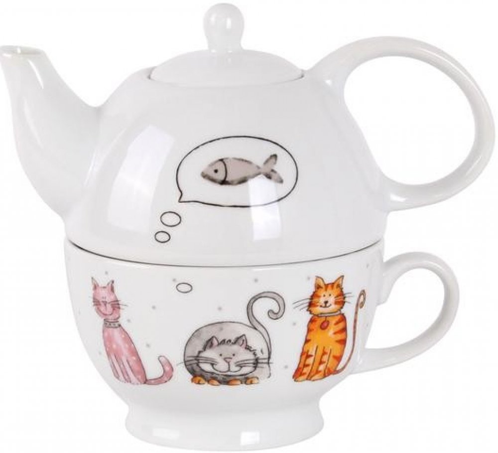Porcelánová konvička na čaj se šálkem - sada 2 v 1 - motiv "Kočka" a "Pes". Je vhodná k nalévání hotového čaje či jiného horkého nápoje. Konvička má objem 470 ml, šálek 360 ml. Sada je také vhodná jako dárek. Zvolený motiv (kočka nebo pejsek), prosím, uveďte do poznámky v kroku 3 (pole pod fakturační adresou)