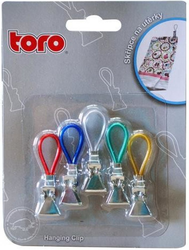 Skřipce na utěrky (háčky, ouška) jsou praktickým pomocníkem v domácnosti na pověšení ručníků a utěrek v koupelně či kuchyni. Set 5 ks. Materiál - guma, kov. Assort barev. Rozměry - 1,5 x 5,2 cm.