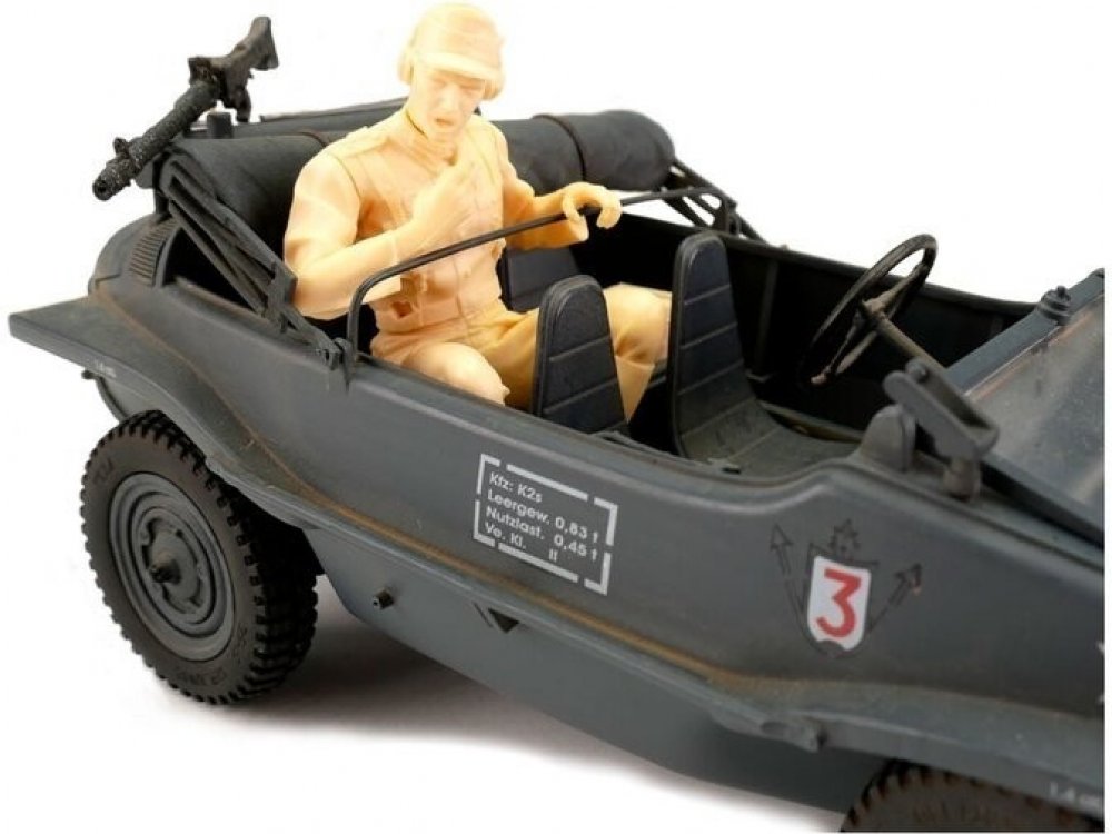 1:16 Schwimmwagen: Sedící figurka obsluhy vysílačky (stavebnice) TORRO. příslušenství k modelům. Stavebnice figurky pro RC model vozidla Schwimmwagen v měřítku 1:16. Figurku je třeba sestavit a nabarvit. Barvičky ani štětce nejsou součástí balení.