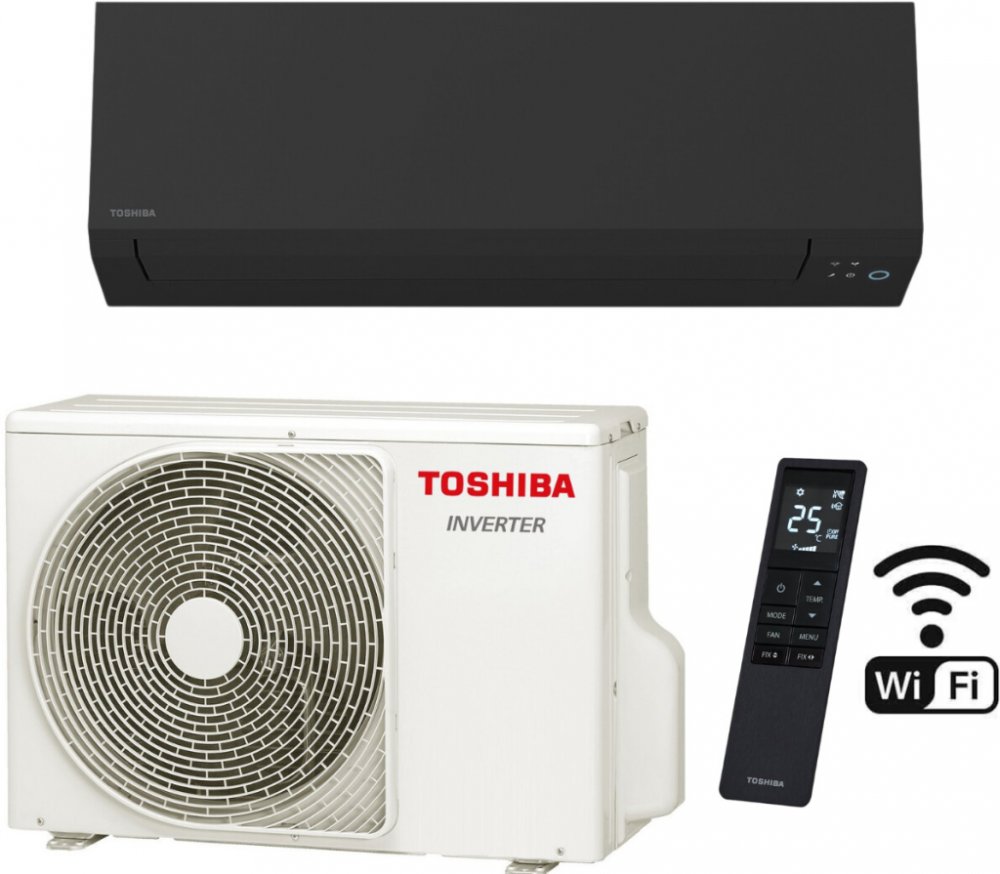 Toshiba Shorai Edge BLACK 6,1 kW (černá matná) Nástěnná klimatizace určená pro chlazení i vytápění. Uvedená cena je pouze za zboží, montáž je v případě zájmu nutno dokoupit. Funkce: Samočistící funkce – Používání kondenzované vody k čištění výparníku, vysoušení vnitřku jednotky po předchozím provozu chlazení. Ultra Pure Filtr – Aktivní filtrace částic do 2,5 µm, filtrační pásky s přírodními látkami. Automatický režim – Automatická volba mezi chlazením a topením. HI-POWER – Maximální výkon a silný proud vzduchu pro nejrychlejší dosažení požadované teploty. ECO mode – Funkce úspory energie optimalizací provozu a spotřeby. Klidný spánek – Postupné zvyšování teploty až o 2 °C při chlazení, resp. snižování při topení. Zabudované Wi-Fi ovládání – Zabudované WiFi ovládání, přes které je možné jednotku ovládat kdykoli a kdekoli přes chytrý telefon nebo tablet. Aplikace Toshiba Home AC Control. Automatický restart – Automatické obnovení provozu po výpadku napájení a obnovení dodávky proudu. Tichý režim – Maximální snížení hlučnosti – tichý režim venkovní jednotky. Designový IR ovladač Sledování spotřeby energie - pouze přes wifi (v multisplitu platí pro novější venkovní jednotky Multi NEXT). Temperování 8°C - Funkce proti vymrznutí prostoru v nepřítomnosti, pouze na topení. 3D proudění vzduchu - Lze ovládat lamely čtyřmi směry přes ovladač (nahoru/dolů a do stran). Parametry RAS-B22: „ Upozornění: Montáž klimatizace je nutné provádět pouze dle příslušných právních předpisů oprávněnou osobou. Dle nařízení EP a Rady (EU) č. 517/2014 a zákona č. 73/2012 Sb., o látkách, které poškozují ozonovou vrstvu, a o fluorovaných skleníkových plynech, ve znění pozdějších předpisů, prodej klimatizace koncovému zákazníkovi není možný bez zajištění odborné montáže k této montáži oprávněnou osobou.“