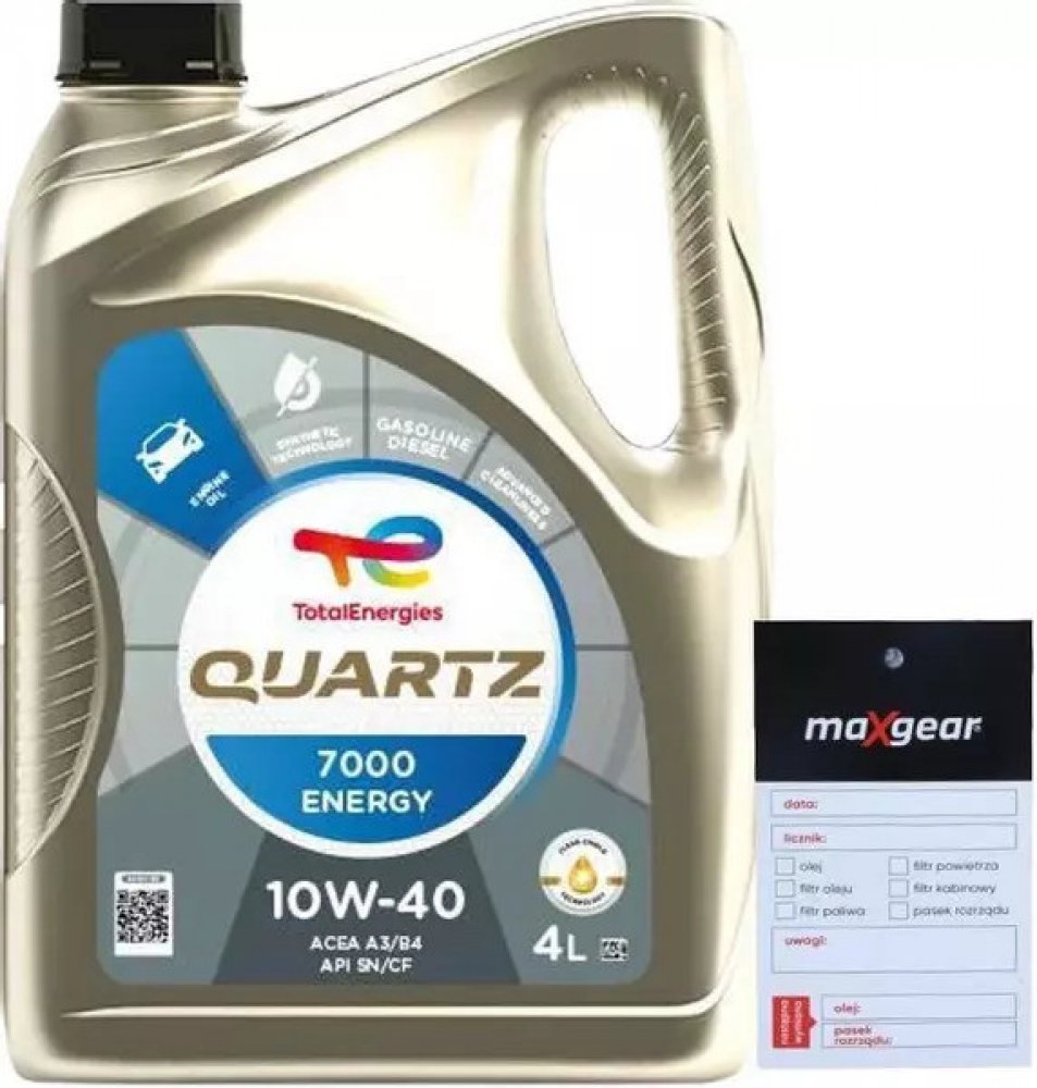 TOTAL QUARTZ 7000 ENERGY 10W-40 je motorový olej na bázi syntetické technologie, který byl vyvinut pro všechny benzinové a naftové motory s nepřímým nebo přímým vstřikováním.