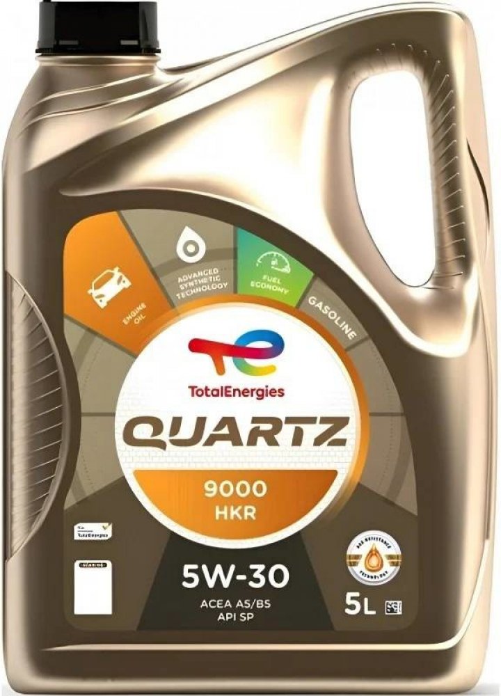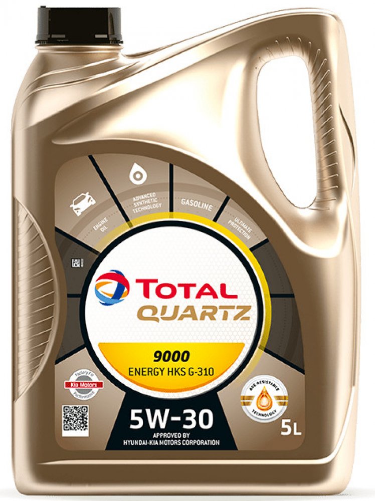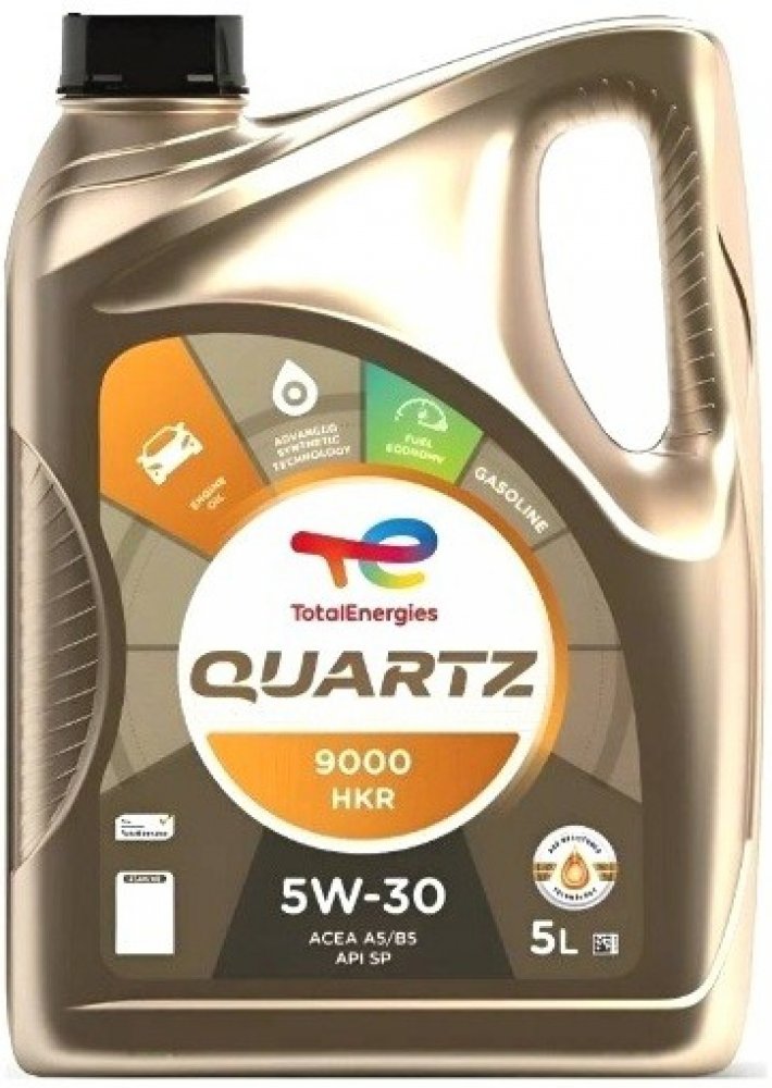 Total QUARTZ 9000 HKR je motorový olej speciálně vyvinutý pro požadavky motorů Hyundai a Kia. Toto mazivo je použito v prvním plnění Hyundai – Kia Motors Corporation. Tento vysoce výkonný motorový olej poskytuje spalovacím motorům vynikající ochranu a spolehlivé mazání za všech provozních podmínek. POUŽITÍ: Je vhodný a doporučený motorový olej pro všechny benzínové motory vyvinuté Hyundai – Kia Motors Corporation. Vykazuje vynikající ochranu vůči opotřebení spalovacího motoru, zajišťuje jeho trvalou čistotu a umožňuje prodloužené servisní intervaly. Je to motorový olej určený rovněž pro nejnáročnější provozní podmínky (dálniční provoz, hustou městskou dopravu). Doporučený olej pro všechny jízdní styly, zejména pro sportovní jízdu při celoročních podmínkách. SPECIFIKACE: API SP Schváleno dle HYUNDAI a KIA v uživatelském manuálu od 02/2010. Olej použitý v prvním plnění. VÝHODY: Prodlužuje životnost motoru. Prodloužené servisní intervaly. Zajišťuje vynikající ochranu vůči opotřebení spalovacího motoru a prodlužuje jeho životnost. Umožňuje díky výborné oxidační stabilitě prodloužené servisní intervaly (30 000 km).