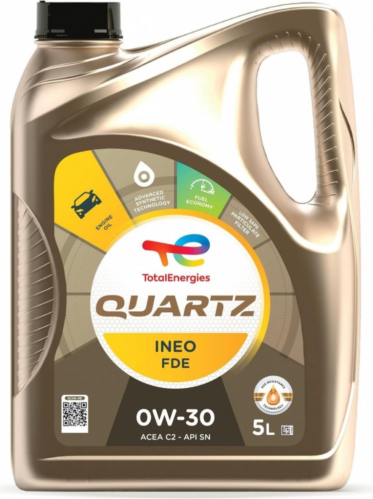 TOTAL QUARTZ INEO FDE 0W-30 s technologií Age-Resistance Technology je vysoce nabité složení, které posiluje antioxidační vlastnosti motorového oleje a nabízí zvýšenou ochranu proti tvorbě kalů, korozi a opotřebení způsobenému třením.