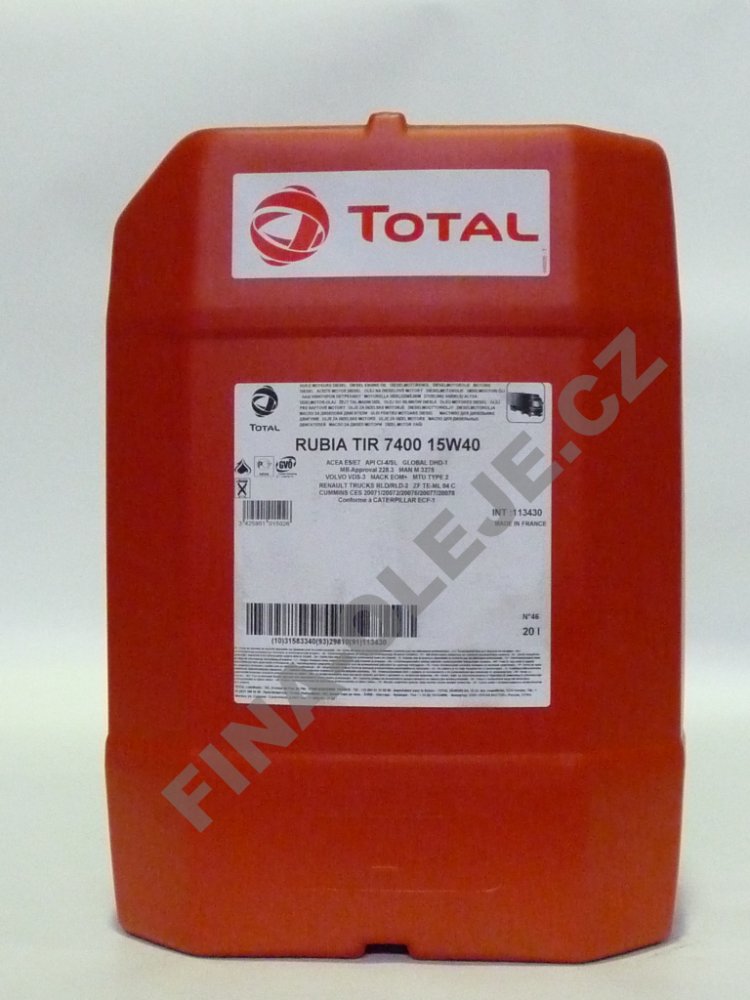 Technický list nebo bezpečnostní list Total Rubia TIR 7400 15W-40 na vyžádání.