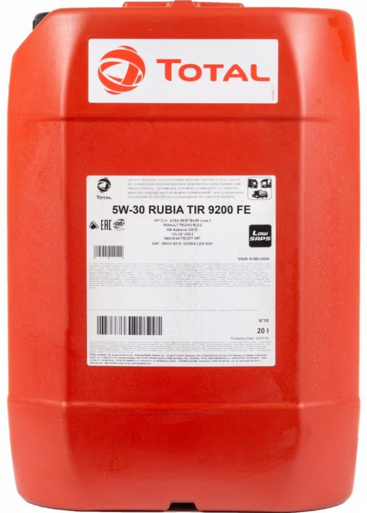 TOTAL RUBIA TIR 9200 FE 5W-30 je vysoce výkonný motorový olej vyrobený speciální syntetickou technologií TOTAL pro dieselové motory užitkových vozidel, podporující úsporu paliva (mazivo FE – fuel economy)