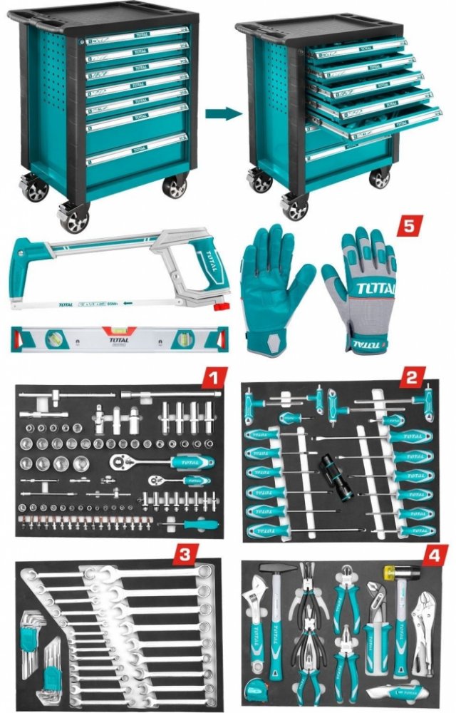 Dílenský vozík, Sada nářadí, 162ks TOTAL-TOOLS THPTCS71621