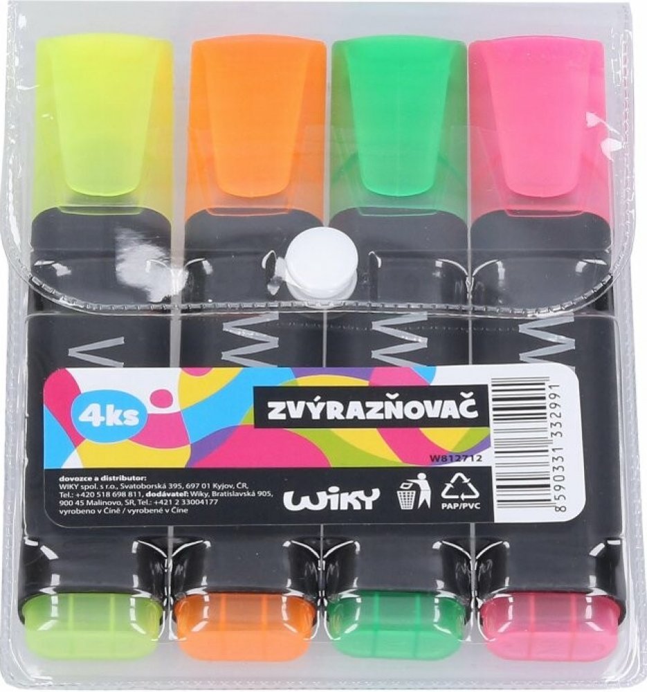 Zvýrazňovače 4 ks • Klínový hrot • 4 základní barvy (růžová, zelená, žlutá, oranžová)