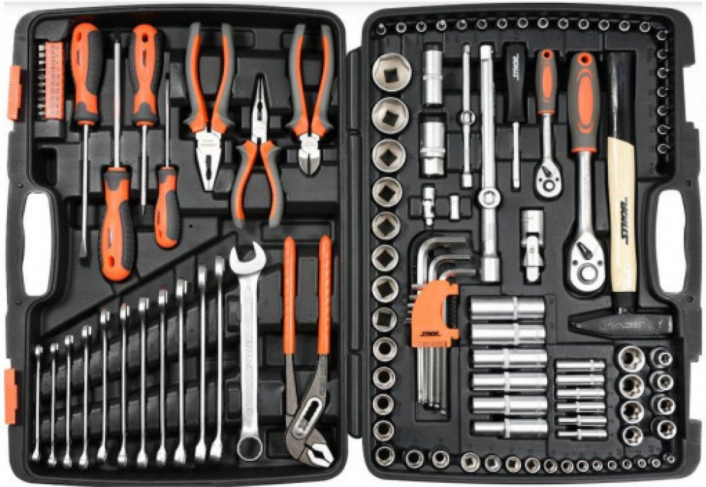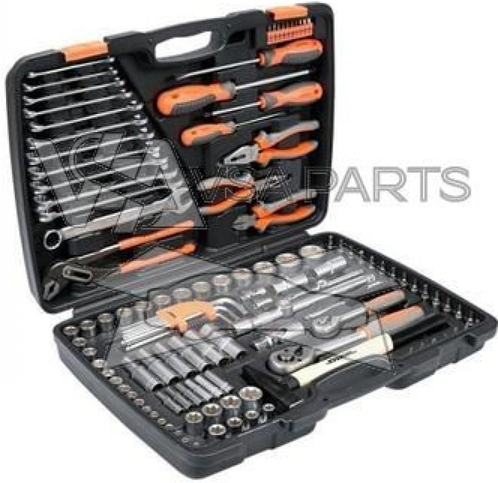 Kvalitní gola sada z nástrojové oceli v praktickém přenosném kufříku.Sada obsahuje dvě ráčny, celou řadu bitů, adaptérů a nástavců 1/4", vše uspořádáno v přehledných pozicích.Plynulý chod zajišťuje ráčnový mechanizmus se 45 zuby. Klíče jsou vybaveny systémem As-Drive, vnitřní profil je tvarován do mírného obloučku, při záběru tak síla působí celou plochou, což snižuje opotřebení šroubu a pomáhá při demontáži již poškozených šroubů.Sada je vhodná pro použití jak doma, tak v garáži, i na cestách., TO-58690