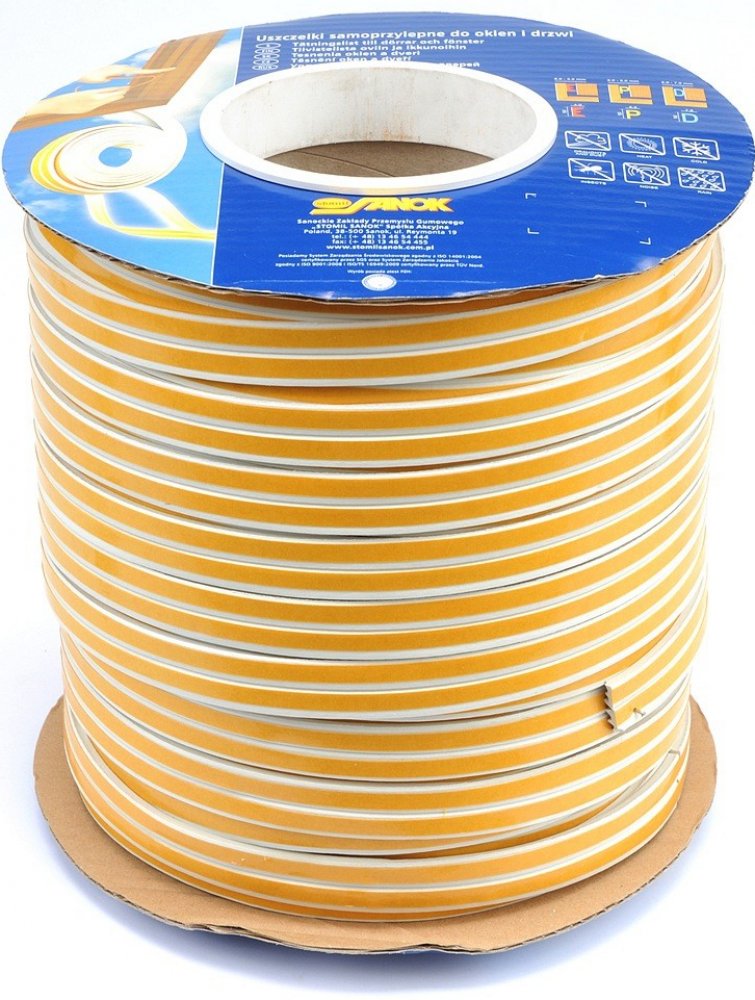 Těsnění do oken a dveří samolepící 9x4mm TYP E bílé 150m Samolepicí těsnění do oken a dveří, vyrobeno z pryže s elastomerem EPDM, která má velmi dobrou odolnost proti povětrnostním vlivům, UV záření, vlivům vzduchu i vody. Těsnění je osazeno samolepící fólií vyztuženou skelným vláknem, zajišťuje účinnou ochranu proti zimě, větru, teplu, hluku, dešti i hmyzu. Toto těsnění umožňuje dosáhnout úspory ...