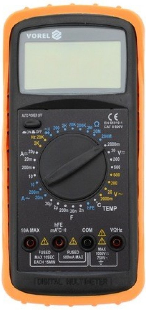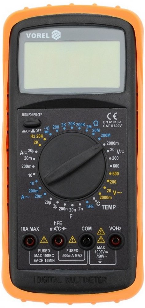 Tento měřák umožňuje měření střídavého a stejnosměrného napětí, proudu i odporu, kapacity, frekvence a teploty. Navíc je tento multimetr vybaven testovacím slotem pro kontrolu tranzistorů a zároveň umí testovat i diody. Mezi jednotlivými typy měření se přepíná pomocí otočného voliče, kde lze rovněž nastavit požadovaný rozsah u jednotlivýc...