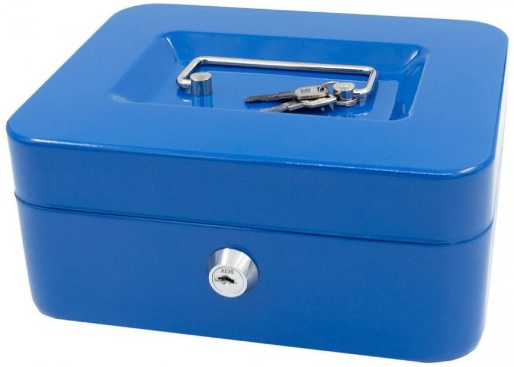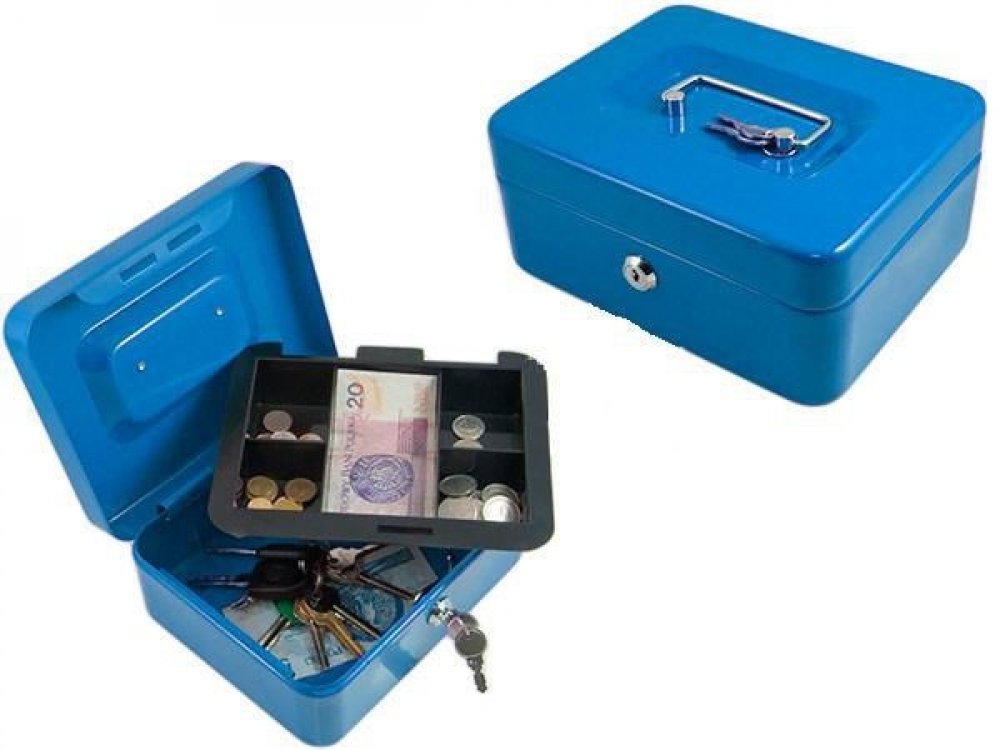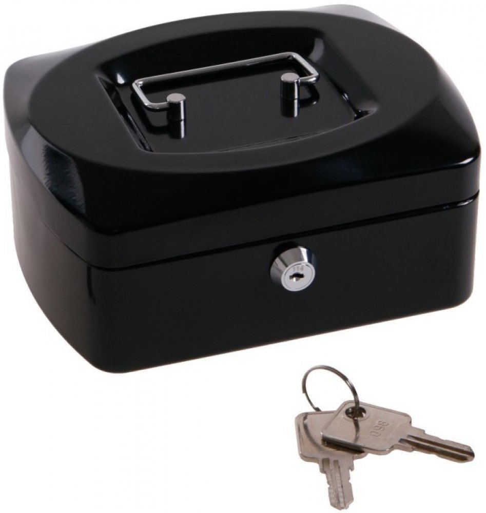 Schránka nebo-li pokladna na peníze o rozměru 200x160x90mm. Pokladna je přenosná a díky jejímu úchytu, který je uprostřed pokladny se Vám ponese zcela pohodlně. Součástí pokladny je i zámek + dva klíče.