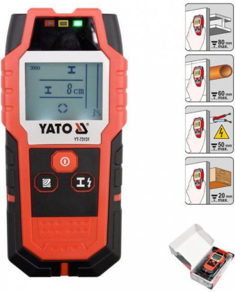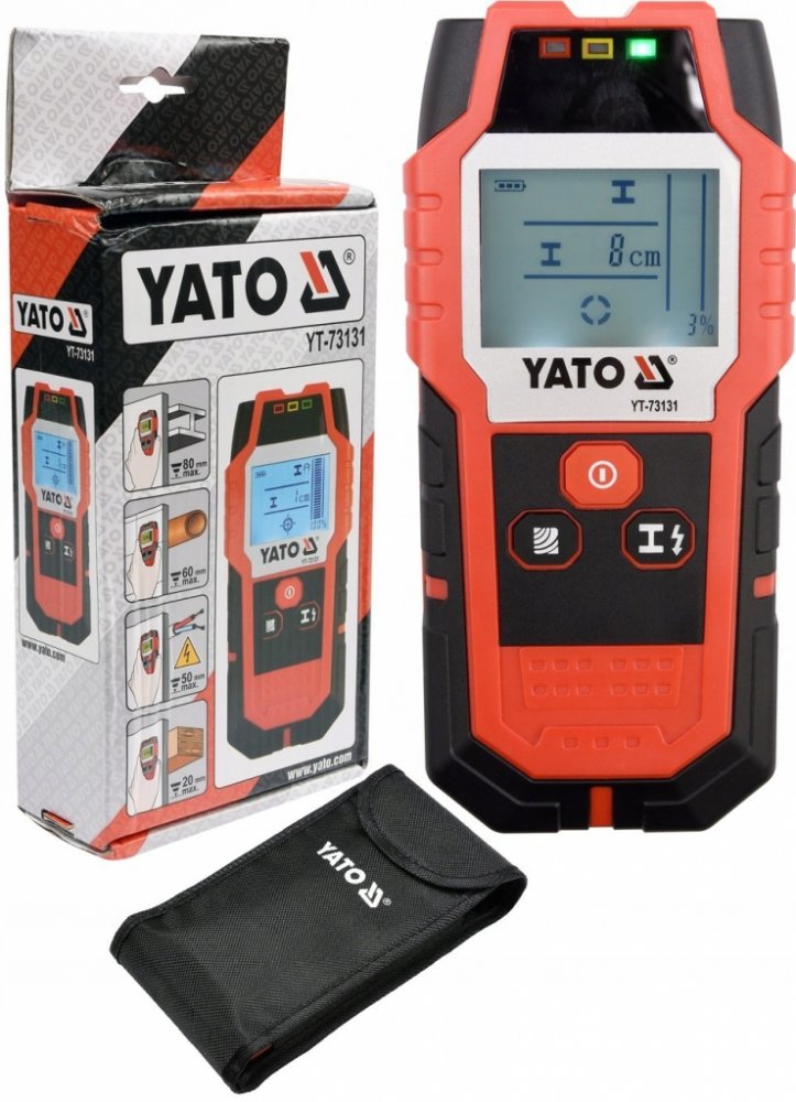 Použití profilového vyhledávače YATO YT-73131 výrazně urychluje práci, zvyšuje bezpečnost a minimalizuje riziko náhodného poškození elektrických nebo vodovodních systémů umístěných pod omítkou. Díky němu můžete např. přesně vyvrtat otvor, zatlouct hřebík a instalovat sádrokartonovou desku do dřevěné konstrukce. Umožňuje také doplnit technickou dokumentaci stavby.
