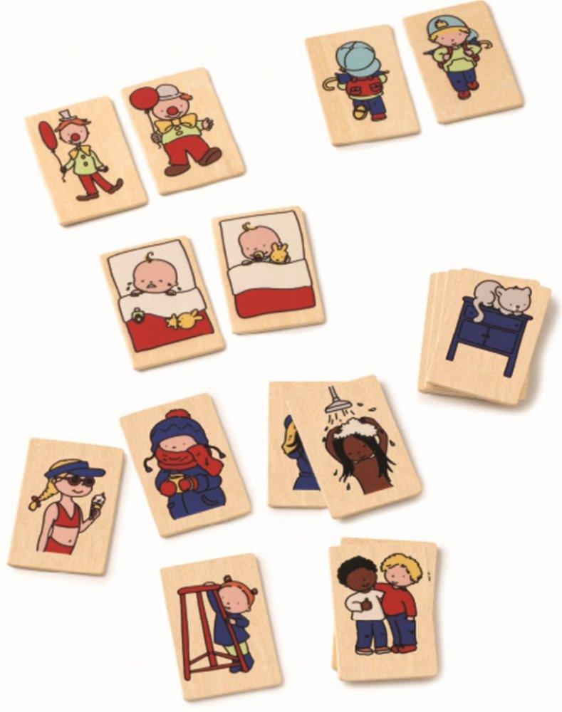 S touto hrou se děti naučí poznat a pojmenovat protiklady. Úkolem je najít dvojice kartiček a popsat, čím se liší. Opět je několik způsobu, jak hru můžete využít. Rozložte všechny karty před sebe a hledejte ty spárvné, které k sobě patří. Popište je, pokud je na kartě veselý kluk. Vyprávějte, v jakých situacích jste veselí vy a naopak, co vás dělá smutnými. Takto postupujte u všech protikladů, vym...