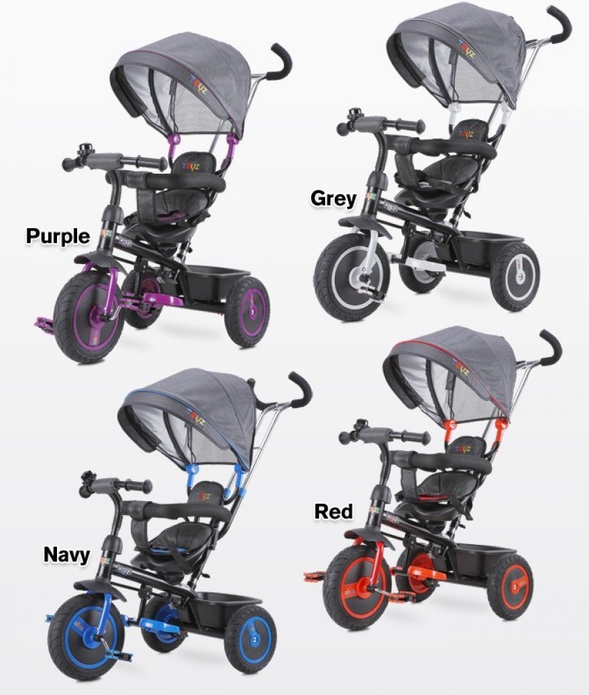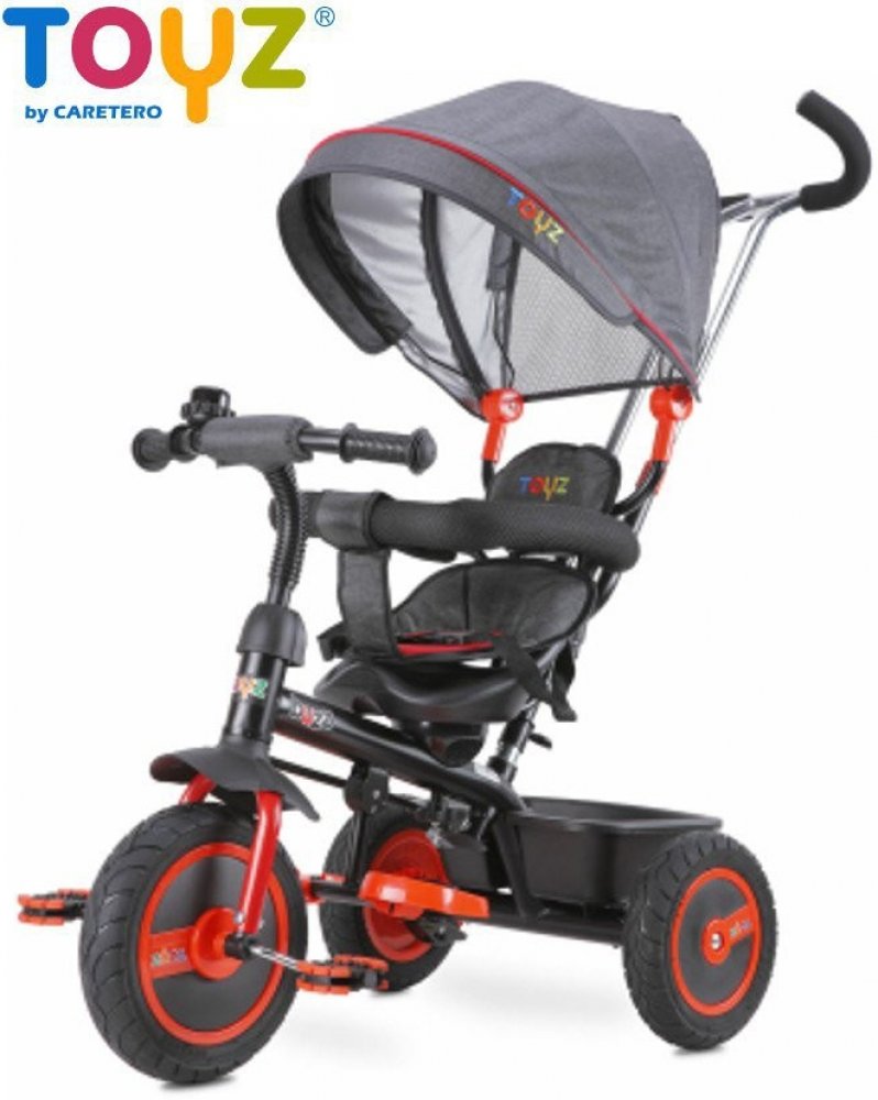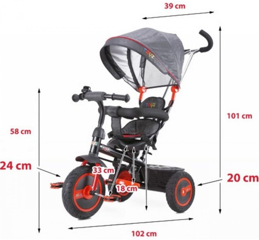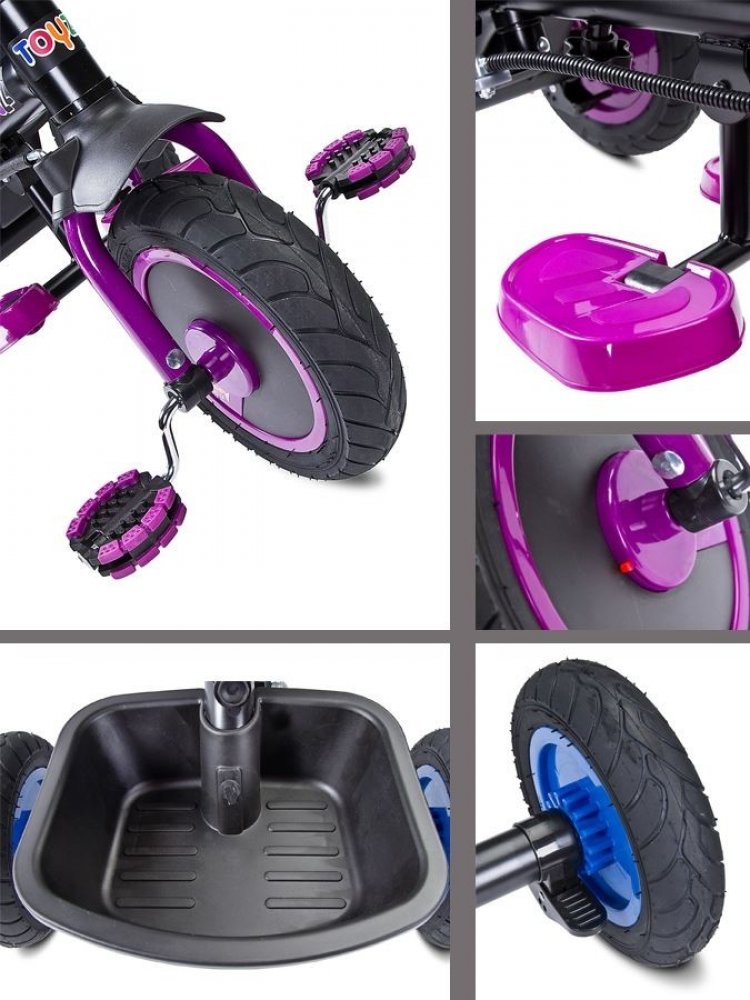 - Kola: Tříkolka má pevná kola, která jsou vhodná pro jízdu na asfaltu i po měkkém terénu.