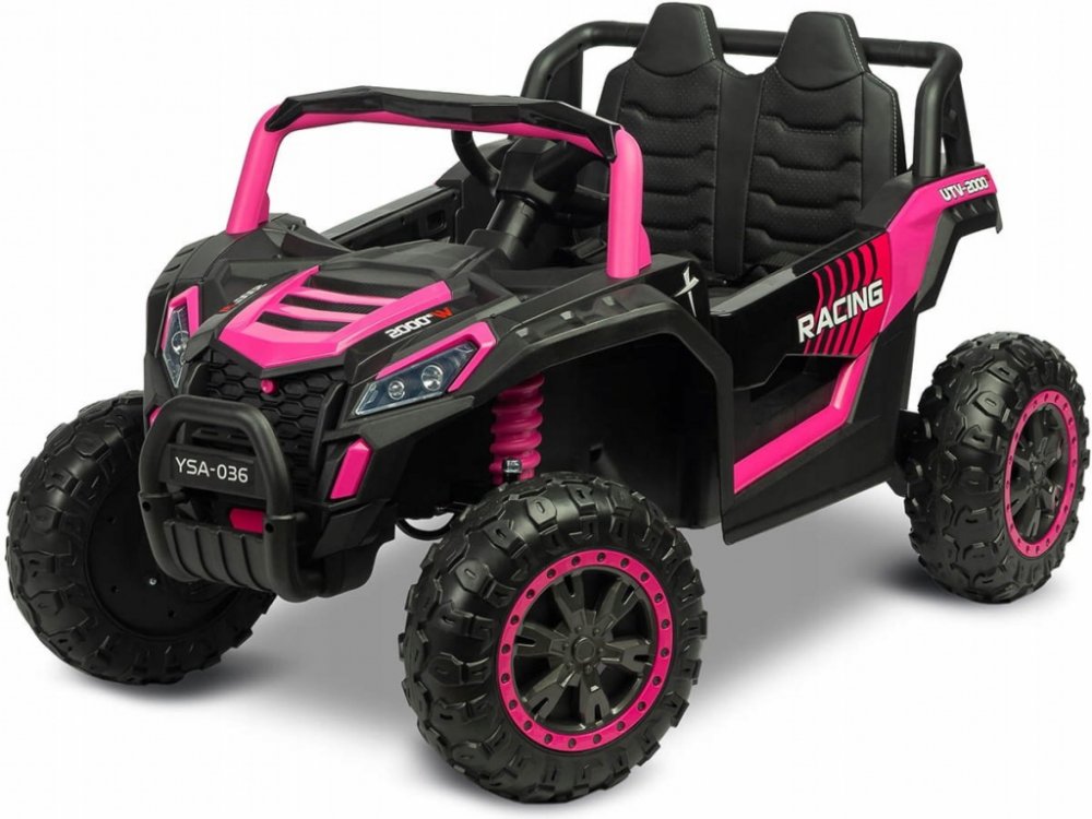 Axel je jedinečná baterií poháněná čtyřkolka Buggy ATV, která kombinuje silný výkon s bezpečností a pohodlím. Řízení tohoto terénního vozidla je neuvěřitelně zábavné, protože má pohon všech čtyř kol. Každé z nich je poháněno 45W motorem, díky němuž si dokonale poradí s nejrůznějším terénem. Velká kola z kvalitní pěny EVA s vysokou světlou výškou zaručují vynikající stabilitu a schopnost překonávat nerovnosti. Maximální nosnost vozidla je až 30 kg, což z něj činí ideální volbu pro aktivní děti. Komfort jízdy zajišťují zadní tlumiče, pohodlné sedadlo potažené ekokůží, bederní pásy, měkký start a automatická brzda. Kromě toho je vozidlo vybaveno detaily zvyšujícími zábavnost, jako jsou otevírací dveře, multimediální panel s bluetooth a zvedací kapota. Je poháněn robustní baterií o kapacitě 12 V/10 Ah. Axel je zárukou dlouhotrvající a vzrušující zábavy pro malé řidiče. Klíčové vlastnosti: - Autíčko na baterie pro jednu osobu se vzhledem čtyřkolky buggy - různé možnosti hry - dítě může řídit bateriové autíčko samo nebo může pečovatelka ovládat dálkové ovládání - zadní odpružení s tlumiči - široké sedadlo z ekokůže - kola z vysoce kvalitní EVA pěny s hlubokým vzorkem - pomalý rozjezd - autíčko zrychluje postupně - bederní pás - automatická brzda - otevírací dveře - osvětlené LED světlomety - otevírací kapota - volant s klaksonem a tlačítkem melodie - multimediální panel s rozhraním USB a bluetooth a předem nahranými melodiemi - výjimečný výkon díky čtyřem 45W motorům Technické údaje: Věkové rozmezí:3 - 8 let Rozměry:rozměry: 113x73x65 cmsvětlá výška: 17 cm Hmotnost výrobku: 73 cm:hmotnost: 19,7 kg Hmotnostní limit: 19,7 kg:max. 30 kg Napájení:napájení: 4 x 45W 12V motor1 x baterie (10Ah 12V) Rozměry sedadla:rozměry: 44x21 cm Výška opěradla:31 cm Rozměry balení:102 x 63 x 35 cm Hrubá hmotnost:hmotnost: 23 kg