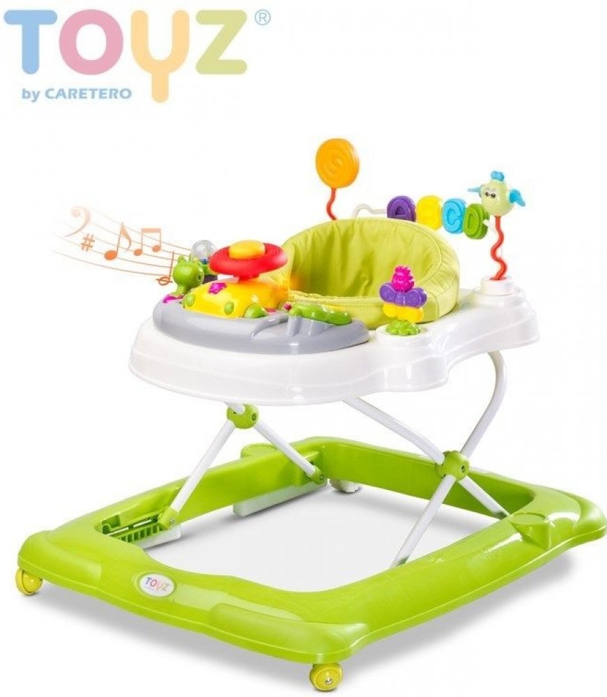Dětské chodítko Toyz Stepp. DÁREK HRAČKA SENSILLO MOTÝLEK.Charakteristika:- sedátko lze otočit o 360°- obsahuje odjímatelný hrací pultík s hračkami- vydává zvuky- součástí pultíku je hračka autíčko, které lze sundat- přední kolečka jsou otočná- baterie nejsou součástí balení- váha cca 4,5 kg- nosnost do 12 kg.- určeno pro děti od 6 měsíců- shodné s normami EN 71 a EN 1273Rozměry :- chodítko: cca 53x60x71 cm- výška sedátka: cca 23-28 cm- vnitřní rozměr: 22 x 24 cmBarva: Zelená