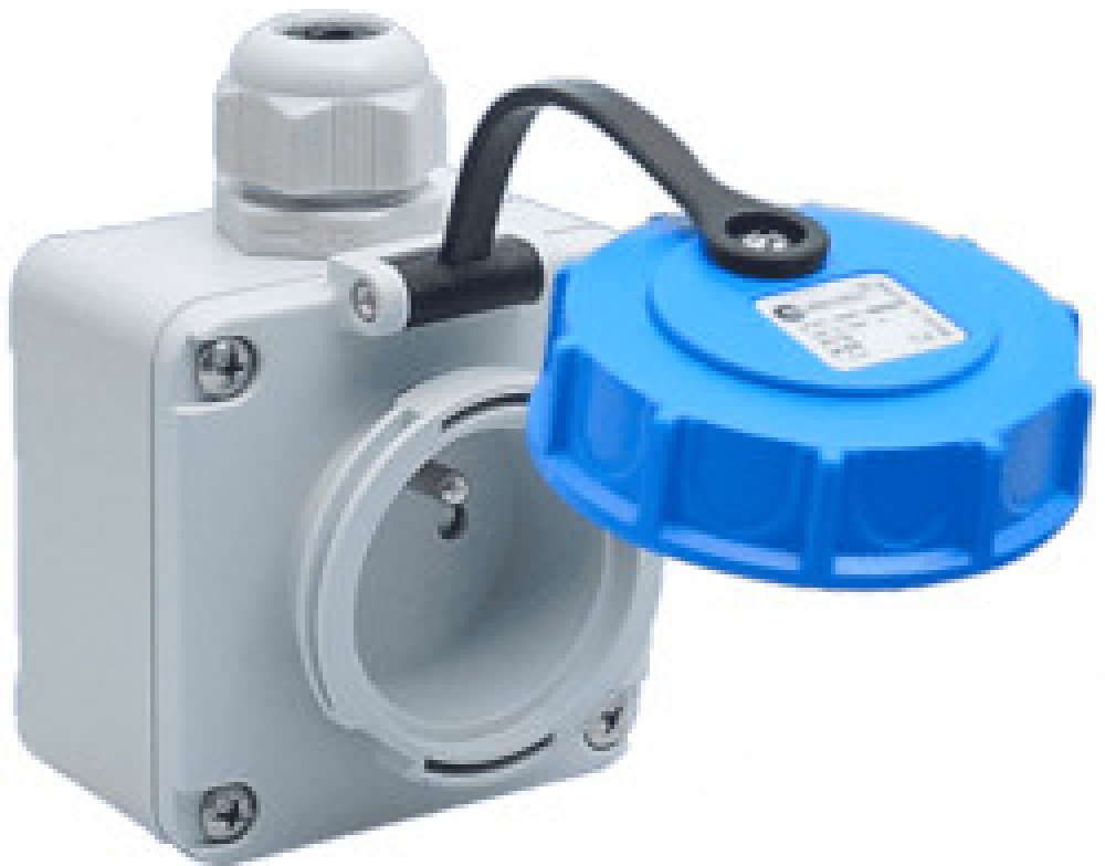 Zásuvka průmyslová 230V na zeď na omítku vodotěsná 16A IP68 Tp Electric 3101-382-0900