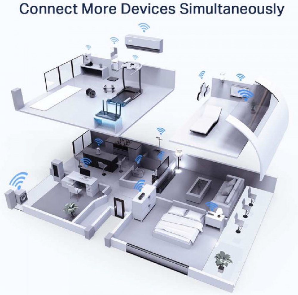 Díky obrovskému skoku vpřed v bezdrátovém připojení přináší Wi-Fi 6 stabilní a reaktivnější Wi-Fi připojení pro zítřejší hyper rychlá připojení domácností. Vychutnejte si reaktivnější hraní her a plynulé videokonference, i když je připojeno více kompatibilních zařízení, které současně přenášejí i data.