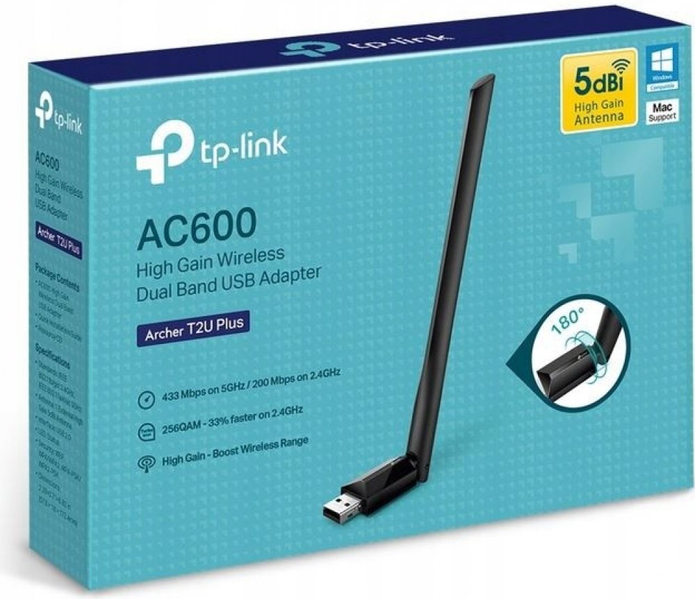 Archer T2U Plus má jednu externí anténu ze ziskem 5dBi pro zajištění silnějšího přenosu a příjmu signálu. Užijte si stabilní Wi-Fi připojení v celém domě.