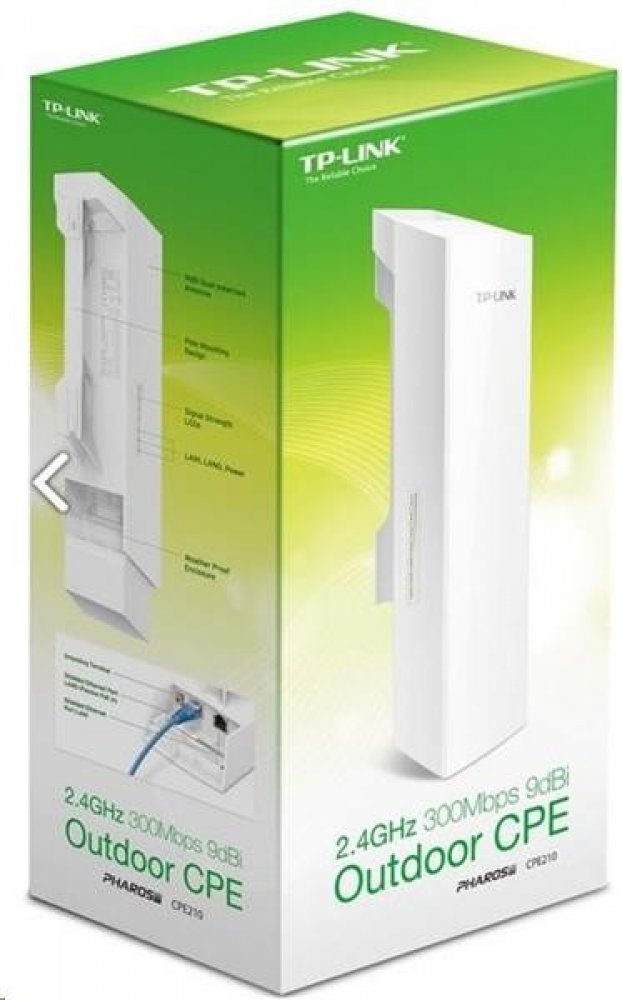 Venkovní jednotka TP-Link CPE210 s parametry 2,4 GHz 300 Mbit/s 9 dBi byla navržena pro cenově hospodárná řešení venkovních bezdrátových sítí. Umožňuje centralizovanou správu a je tak flexibilním a ideálním řešením pro aplikace typu point-to-point, point-to-multipoint a venkovní pokrytí bezdrátovou sítí. Díky výkonu na profesionální úrovni a uživatelsky přívětivému designu je jednotka CPE210 perfektní volbou pro firemní i domácí uživatele.