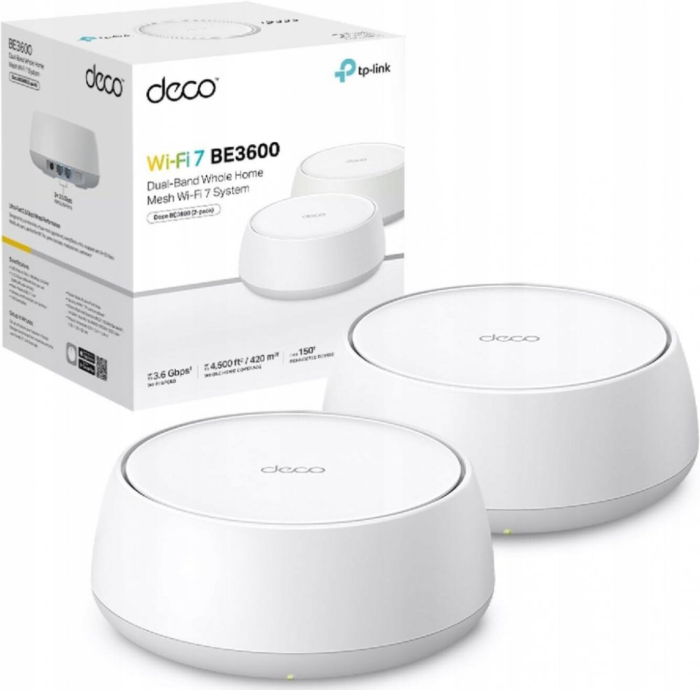 TP-Link Deco BE3600 Wi-Fi 7 Mesh WLAN (2-pack), router a opakovač 3,6 Gb/s WLAN, 2 x gigabitový port na jednotku, MLO, WPA3, VPN, zabezpečení před dětmi, doporučeno pro domy s 2-3 ložnicemi