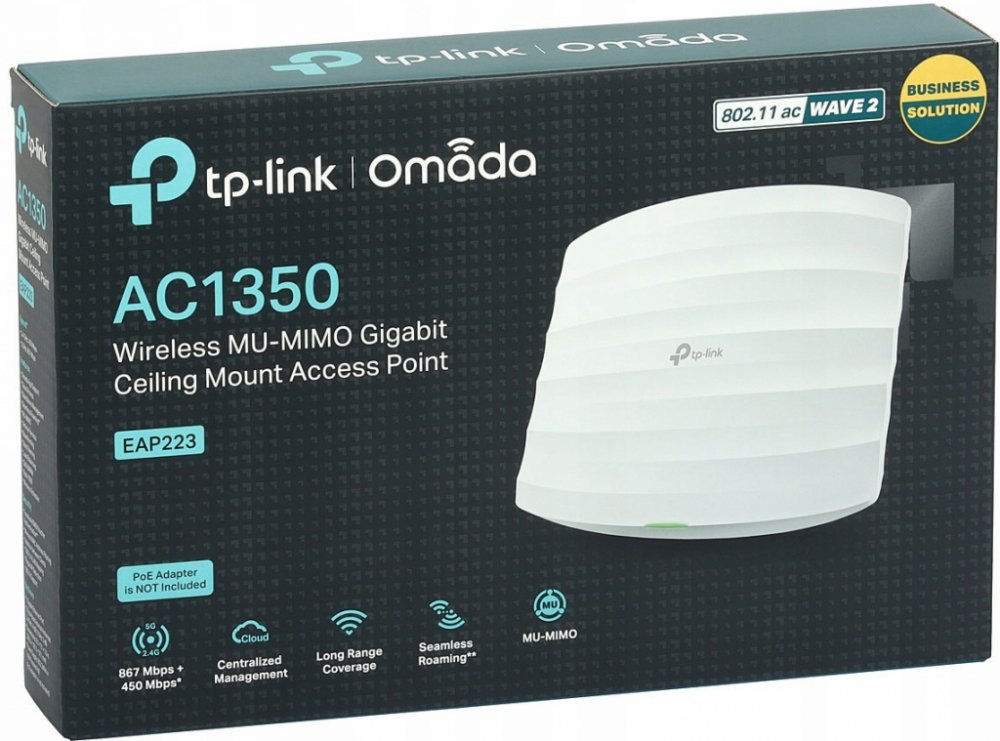 Každý podnik v dnešní době potřebuje spolehlivé připojení k síti. Přístupový bod TP-Link EAP223 vám poskytne bleskovou dvoupásmovou Wi-Fi síť s celkovou rychlostí až 1 317 Mbit/s. V pásmu 2,4 GHz dosahuje hodnota rychlosti 450 Mbit/s a v pásmu 5 GHz pracuje s neuvěřitelnou rychlostí až 867 Mbit/s.