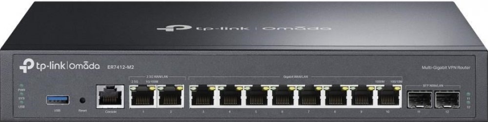 TP-Link ER7412-M2 Omada Multi-Gigabit VPN Router Čtyřjádrový procesor @2.0GHz 2× 2,5G RJ45 WAN/LAN porty 10× Gigabit WAN/LAN porty (2× SFP, 8× RJ45) 1× port USB 3.0 (podporuje úložiště USB a zálohování LTE pomocí LTE dongle) Až 11 WAN portů Vysoce zabezpečené SSL/ IPSec / GRE§ / WireGuard / PPTP / L2TP VPN & OpenVPN Centralizovaná správa cloudu přes web nebo aplikaci Omada Ochrana proti DoS, filtr...