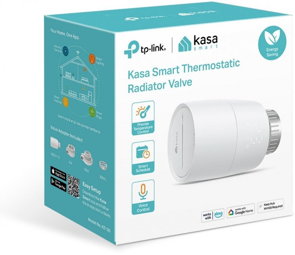 Hlavice KE100 se připojuje k vaší domácí Wi-Fi síti a komunikuje s mobilní aplikací Kasa. Pomocí aplikace můžete nastavit požadovanou teplotu, vytvořit plány vytápění a sledovat aktuální stav hlavic.