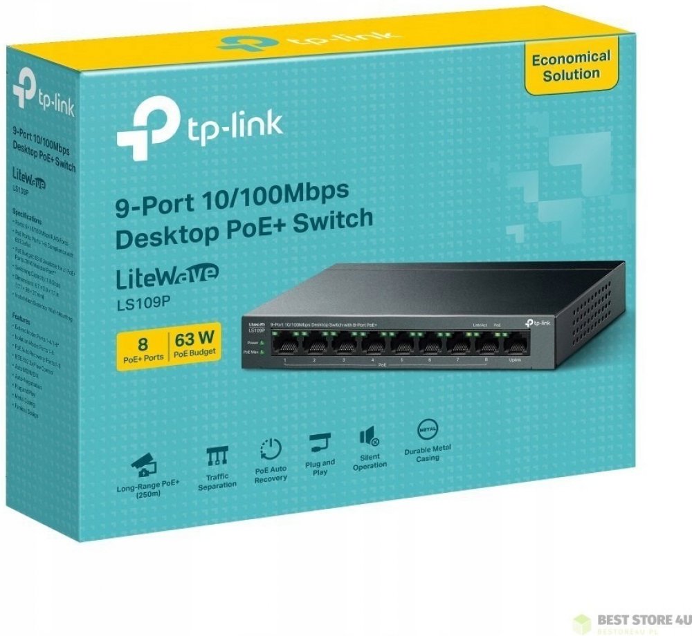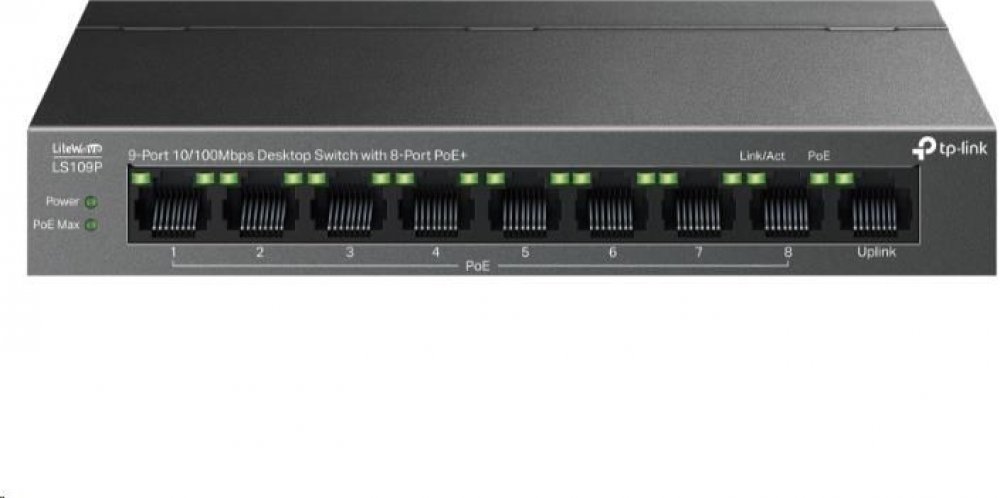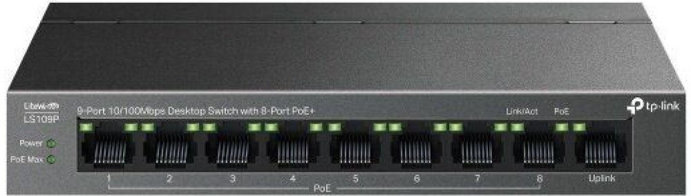 *9× 10/100 Mbps RJ45 Ports (8× 10/100 Mbps 802.3af/at PoE+ Ports)